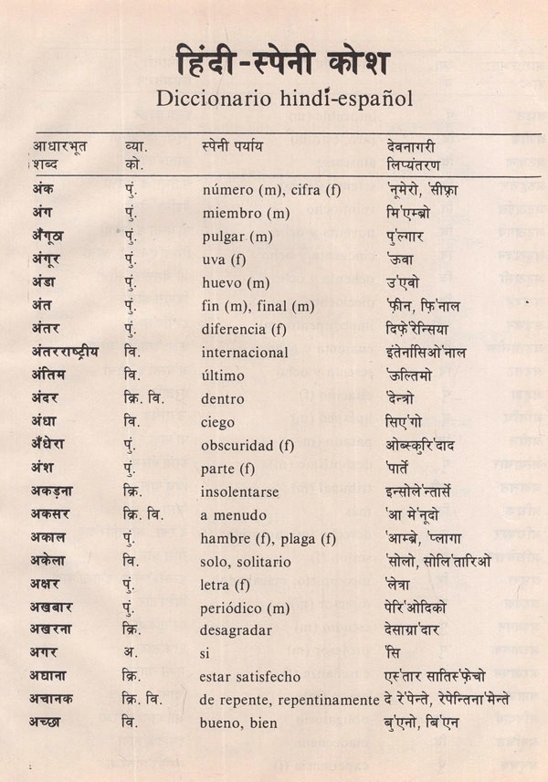 हिंदी- स्पेनी कोश- Diccionario Hindi Espanol, Hindi- Spanish Dictionary (An Old and Rare Book)