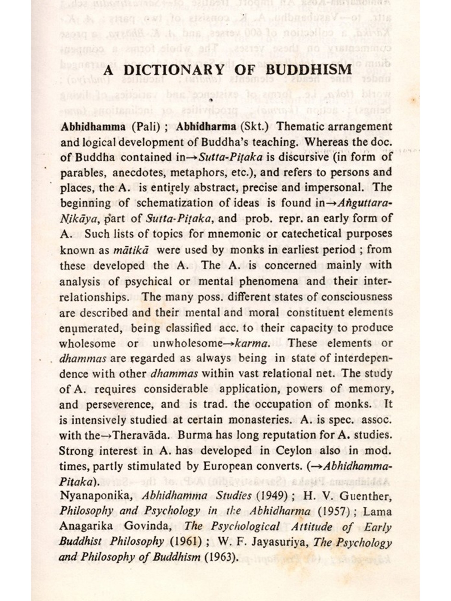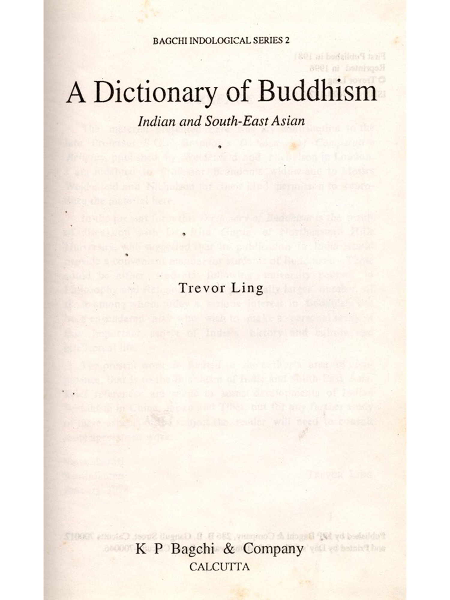 In the present form this Dictionary of Buddhism is the result of discussion with Dr.. Rita Gupta of Northeastern Hills University, who suggested that its publication in India would provide a convenient manual for students of Buddhism. These could be either, students following university courses in Philosophy and Religion, or the potentially larger number of those among whom today a serious interest in Buddhism has been engendered and who wish to make a personal study of this important aspect of India's history and culture and intellectual life.
