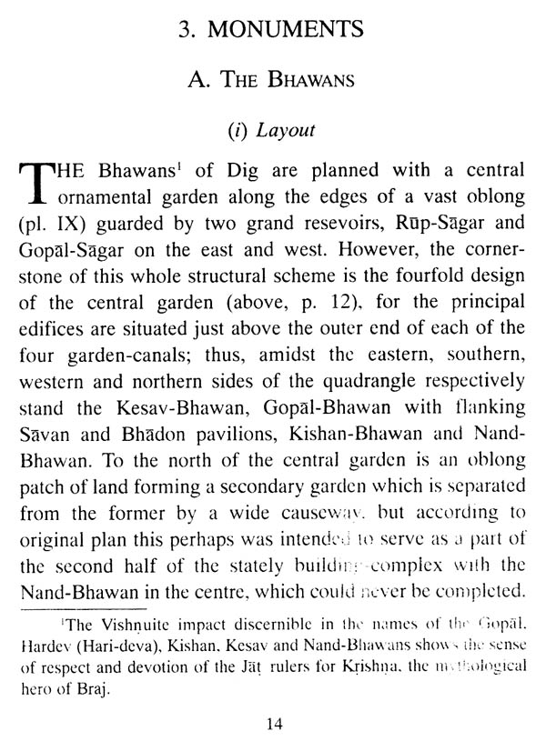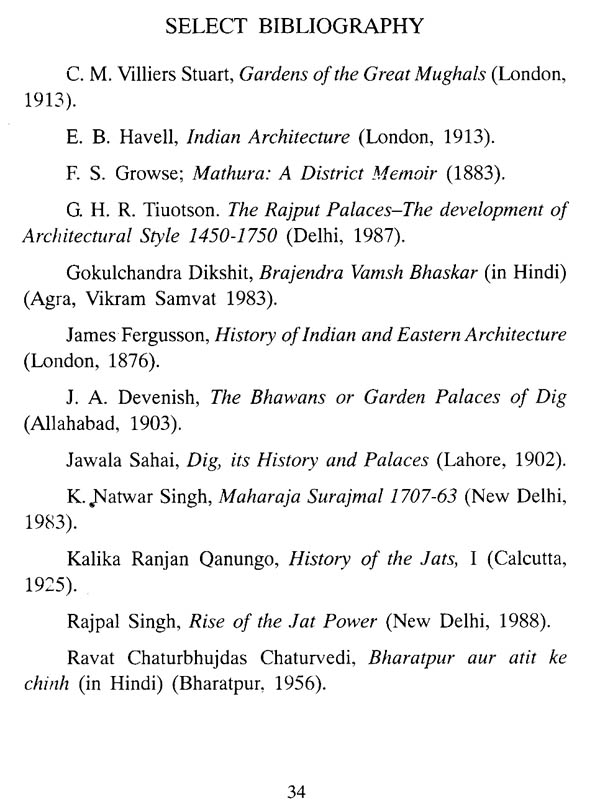 BEFORE the eighteenth century Dig was one of the humerous tiny and unknown villages of eastern Rajasthan, forming a part of the Agra province of the Mughal Empire. Traditionally, it falls within the territorial limits of the holy Braj-bhumi or the land of Braj, which connects its past with the mythological hero Krishna and his kinsmen, the Yadavas, who, according to a strong local belief were the ancestors of the modern Jats of this region. Some scholars are inclined to identify Dig with Dirghapura mentioned in the Skanda-Purana' along with Nandigrama (Nandgaon), Brishatsanu (Barsana) and Govardhana (Govardhan)—all in District Mathura (Uttar Pradesh). However, the antiquity of this place has yet to be proved archaeologically, although the Painted Grey Ware, a characteristic pottery of the first millennium B.c., has been Spotted in the vicinity of Dig at Januthar and Kushana. Historically, the past of Dig is intimately associated with the rise of the Jat peasants of neighbouring villages of Sinsini and Thun to power, as a result of the Mughal misrule’, under the leadership of Rajaram (1686-88), his father Bhajja singh (1688-95) and his younger brother Chtdaman (1695-1721). After the death of Chadaman his nephew, Badansingh (1722-56) succeeded in assuming the headship of the tribe and consolidating his authority over several outlying districts, and thereby becoming the virtual founder of the Jat house of Bharatpur.