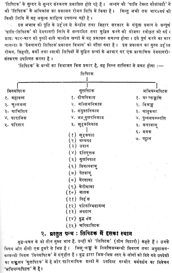 In the 19th Century the lost Buddhist tradition especially the Pali-Tradition of the Theravada Buddhism was revived. Subsequently separate departments and institutions for the study of Pali were established. Nava Nalanda Mahavihara was one of them. The principal aim and objective of establishing the Nava Nalanda Mahavihara was to publish entire Pali Tipitika Text in Deva Nagari Script. To materialize this objective the Government of India and State Government of Bihar jointly sanctioned a project of editing and publishing the entire Pali-Tipitika in 41 Volumes in Deva-Nagari Script. The Mahavihara, under the able guidance of Late Bhikkhu Jagdish Kashyap, published for the first time the entire Pali-Tipitika Text in Deva-Nagari Script in 1955-56 on the occasion of 2500th year of Buddha Jayanti in 41 Volumes. This publication of Pali Tipitika presented a coordinated edition of Texts based on the printed books in Roman, Sinhali, Burmese and Siyamese scripts. This publication gave a golden opportunity to the people, especially the people of Hindi speaking areas, to know more about the Buddha and his Dhamma, which was lost in India several centuries ago. It also became very popular and highly useful among the students and scholars of all over the world and was highly appreciated for the quality of the editing. Due to its popularity and high demand it went out of the market quickly. Its second edition or reprint became the need of the day.