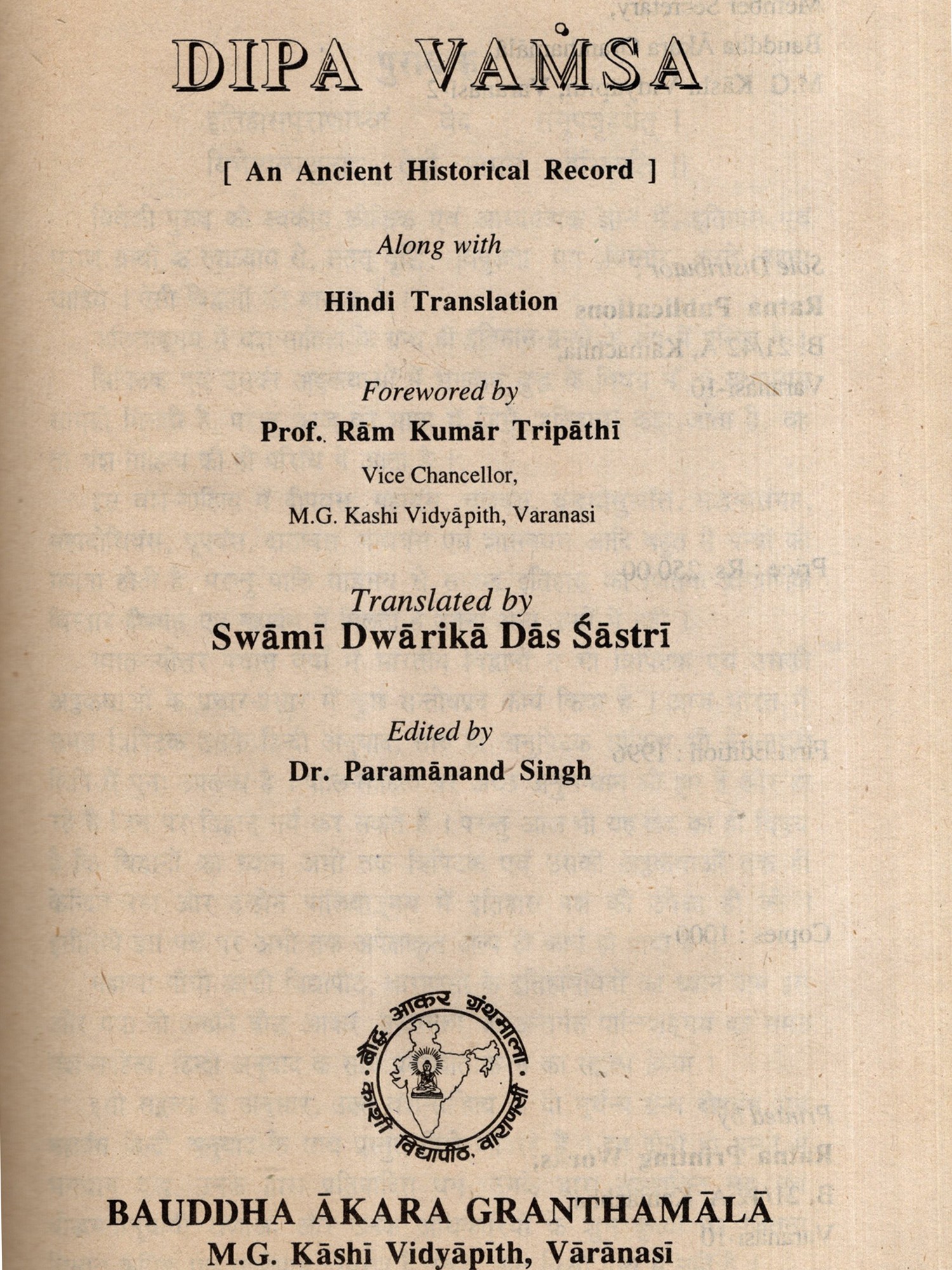 दीप वंस: Dipa Vamsa- An Ancinet Historical Record Along with Hindi Translation (An Old and Rare Book) (Only 1 Quantity Available)