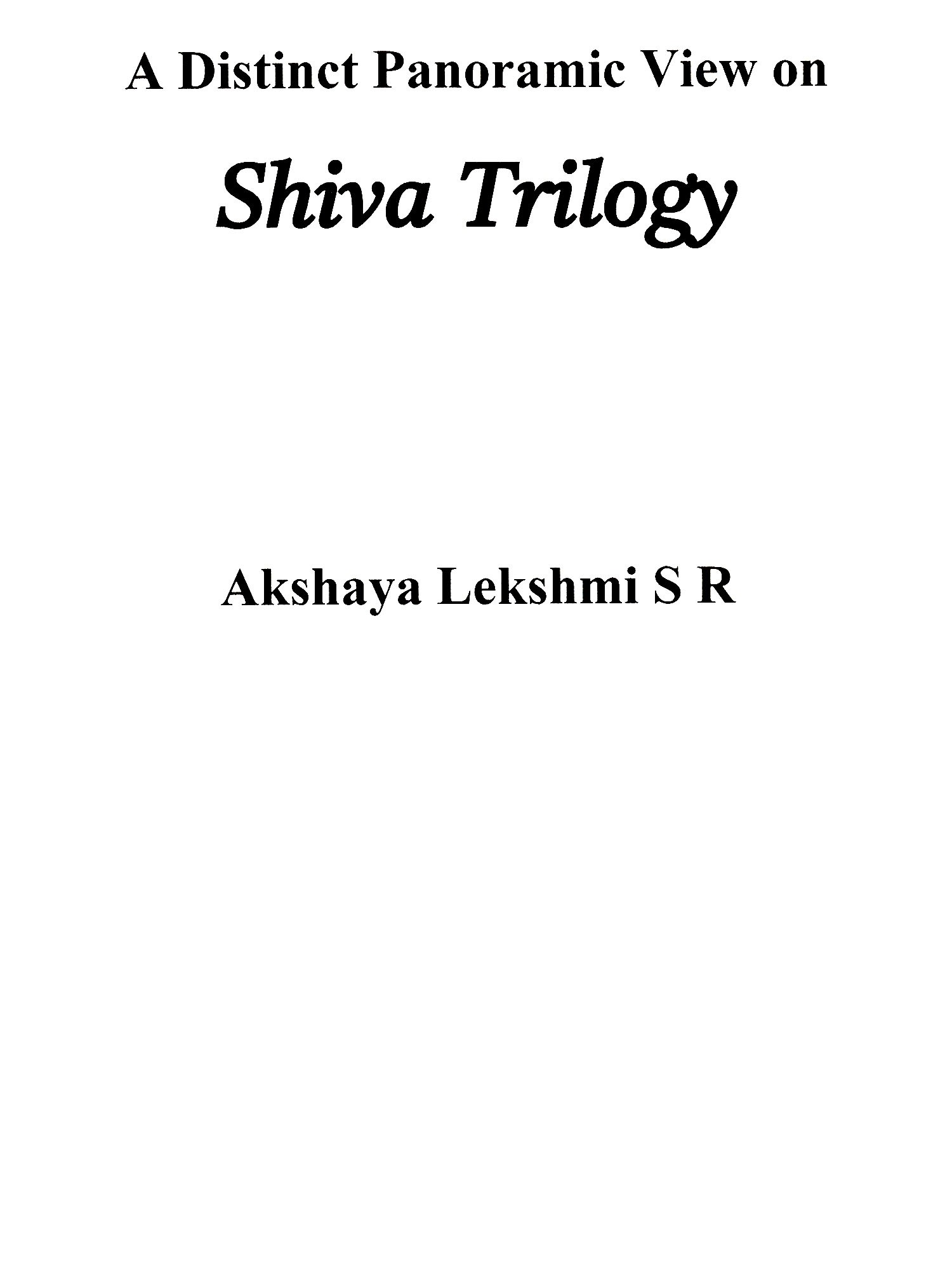 Greetings, I Am Akshaya Lekshmi. S. R, and I am thrilled to present my first published work. Hailing from the beautiful region of Kanyakumari and currently based in Coimbatore, I am a passionate Ph.D. scholar specializing in English literature with a keen focus on Indian mythologies. My academic journey has been enriched by the publication of several papers in this field, and now, I am excited to introduce my latest endeavor. In this upcoming book, A Distinct Panoramic View on Shiva Trilogy, I delve into the fascinating world of Indian mythologies through a comprehensive study of the Shiva trilogy by Amish. Drawing upon my expertise and research, I aim to provide an insightful analysis of these literary works by comparing and contrasting them with existing mythological narratives. Through this exploration, I hope to offer readers a fresh perspective and a deeper understanding of the rich tapestry of Indian mythology.I am Immensely grateful for the opportunity to share my passion for literature and mythology with you, and I sincerely hope that my work will resonate with enthusiasts and scholars alike.