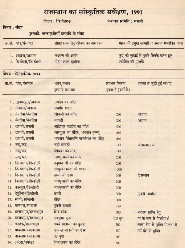 जिलेवार सांस्कृतिक सर्वेक्षण चित्तौड़गढ़: District Wise Cultural Survey Chittorgarh