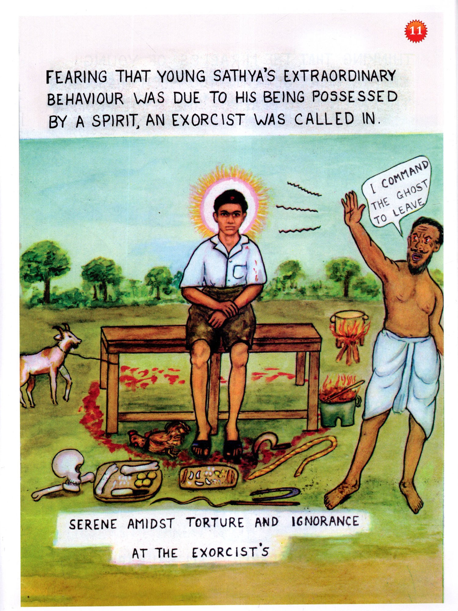 These 30 drawings depict the unfolding of the Avatar from the Baby on the Cobra to the Benediction from the Sky. Turing them over and gazing at them again and again, the child mind inherent in every one of us can benefit by the impact of the Eternal and the Universal, the All-Knowing and the All Moving Presence of Bhagawan Sn Sathya Sai. I have benefitted so and I am sure kindred minds will benefit too.