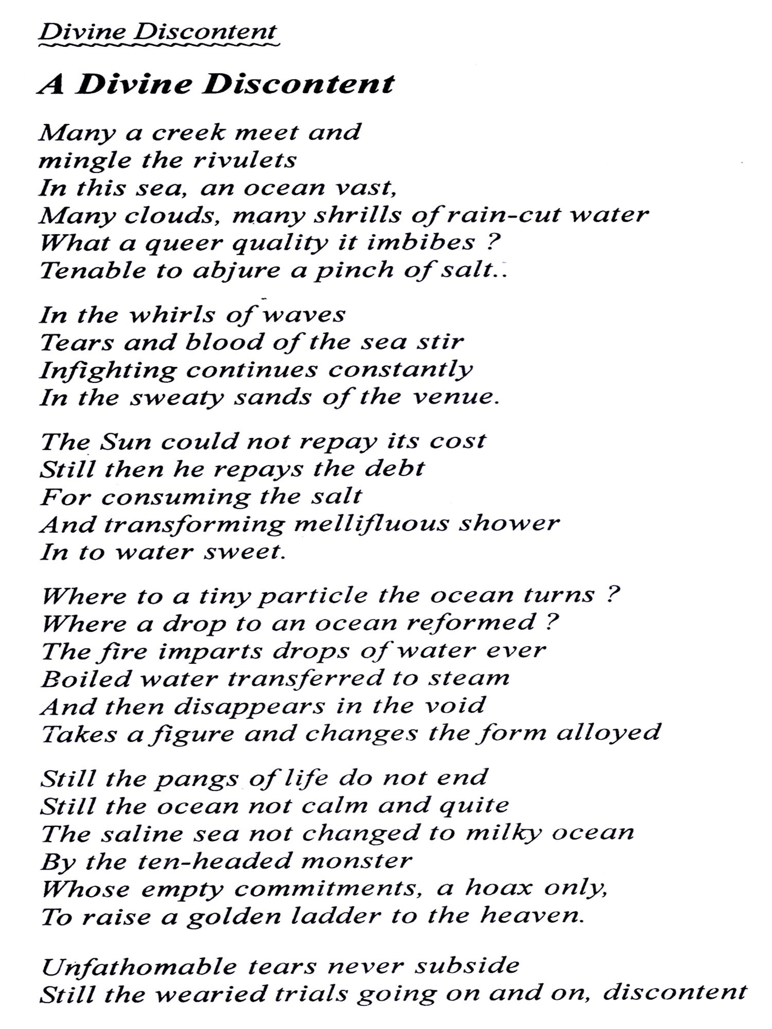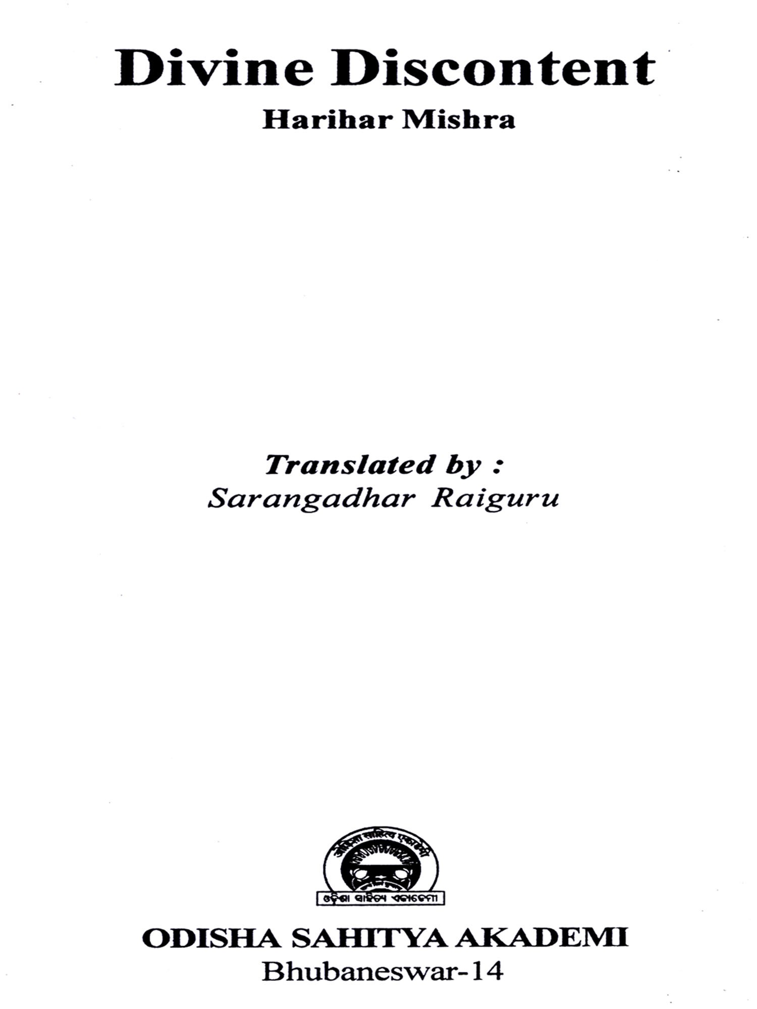 Odisha Sahitya Akademi is honoured to publish translation of the Odia Poetry book "Dibya Asantosh" into English as "Divine Discount" for wider readership.