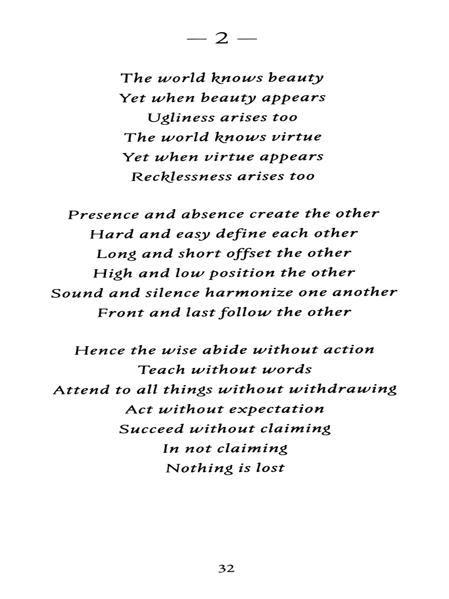 Being with the Tao Te Ching and reading it with wei wu wei patience, I often found esoteric gems in the poems that had not made it into any English translations I had read over the years.