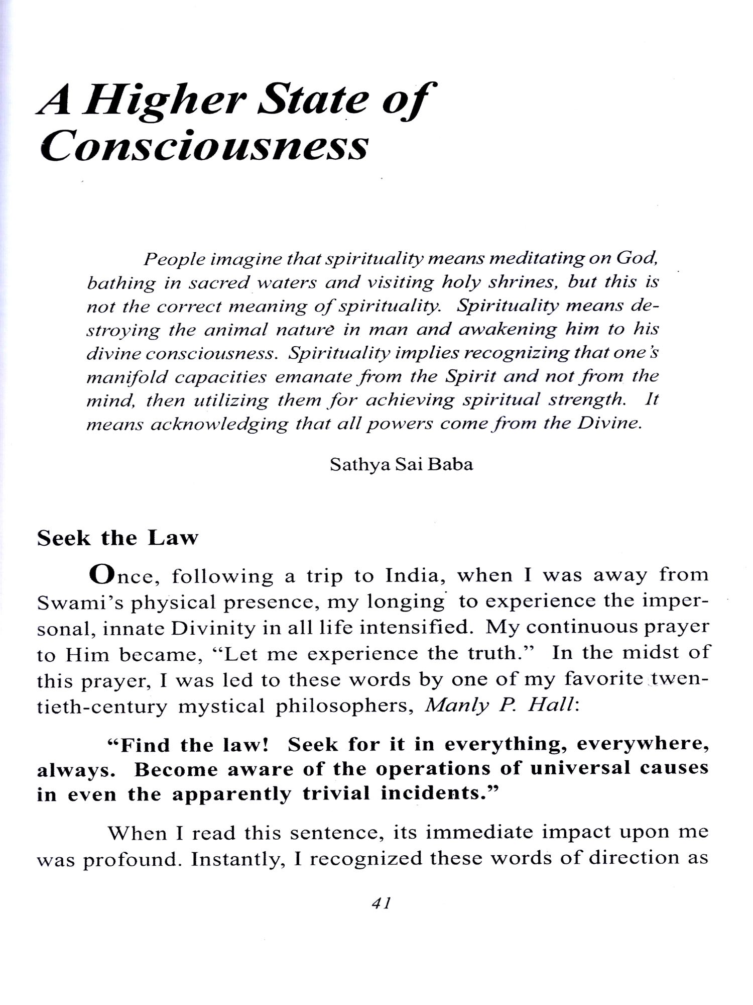 From these early experiences with Sai Baba, I knew that self-realization was more than just a concept. Human beings could attain wondrous spiritual heights. For the first time, I believed there was a deeper purpose to life. I sensed that, from Swami, I could learn everything there was to be learned, and more than could be imagined.