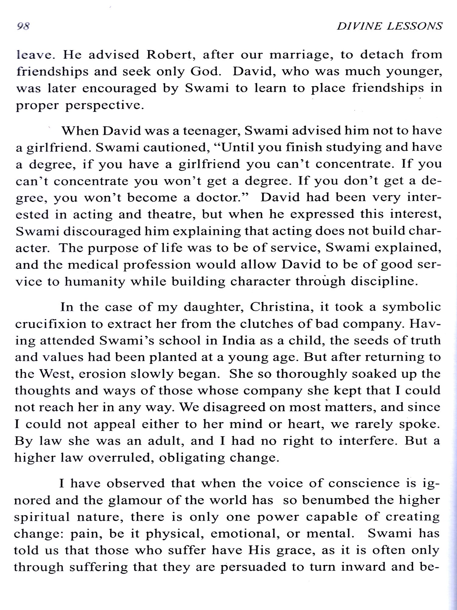 When I first met Swami, I did not instantly recognize His Divinity, as some do. But I instantly recognized what He was not. I knew I was in the presence of a perfected being who was devoid of a human ego, beyond gender, exhibiting beatific, angelic, otherworldly qualities, and capable of the most exquisite self-less love not found in this world. His voice had the strength of a man, the softness of a woman and the purity of a child.
