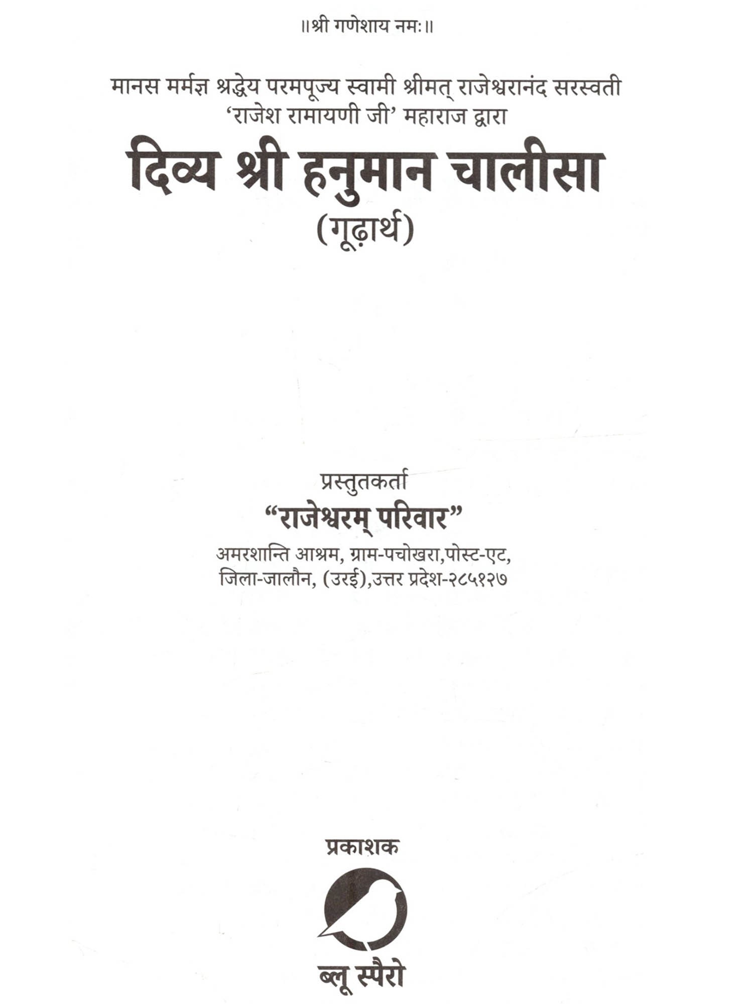दिव्य श्री हनुमान चालीसा: Divya Shree Hanuman Chalisha (Esoteric Meaning By Shraddhey Parampujya Swami Shrimat Rajeshwaranand Saraswati Rajesh Ramayani Ji Maharaj)