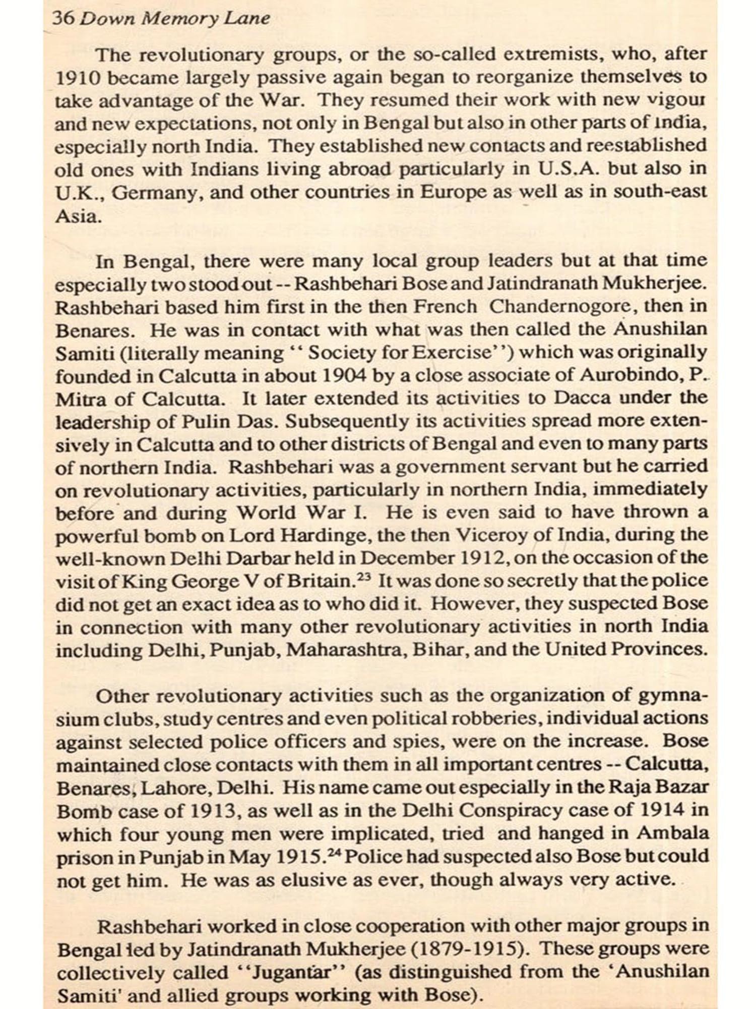 Being winter, however, the beach was practically deserted especially as the sun was going down as a rolling and dancing crimson disc. It was casting a mild red glow over the sky, over the big 'Sris' trees, on the other bank of the river, and a dimmer shadow over the sandy beach itself. The whole atmosphere was serene and calm. But it was the most excitable occasion in the year 1925 for five young boys, still in their teens who assembled there and sat on the sandy beach in a small circle. Their hearts were beating fast, their eyes and ears were alert, lest there should be anybody else to find or hear them. Their minds were deter-mined to trail a new path -- to embark on an adventure compared to their elders and to many boys of their age, that is, to strive for a Free India. Clasping the most sacred of Hindu religious book, Bhagvad Gita in folded hands, cach of the five boys took this oath: "Holding this sacred book I promise to spare no efforts and no sacrifices including my life for the attainment of the freedom of India."