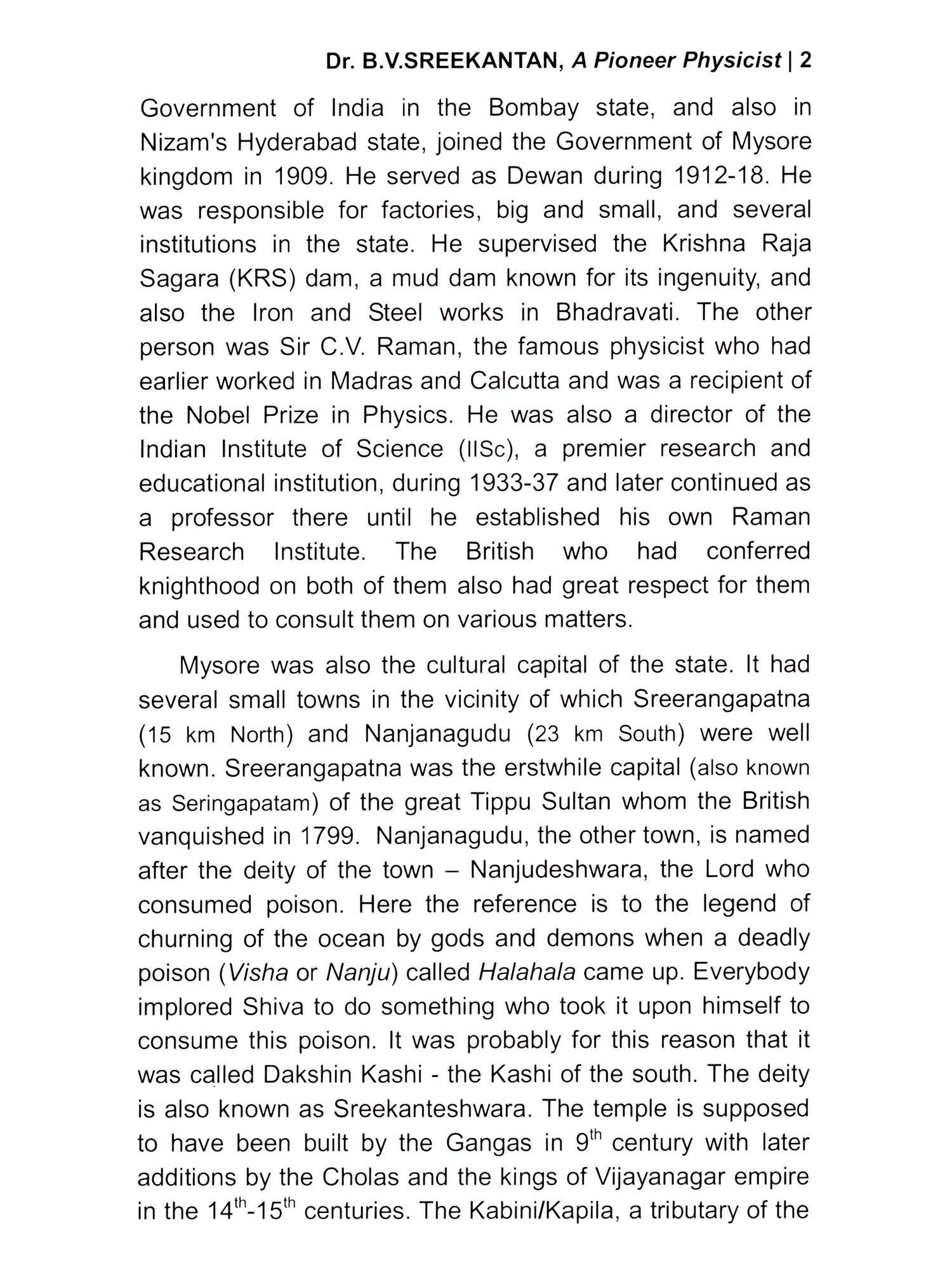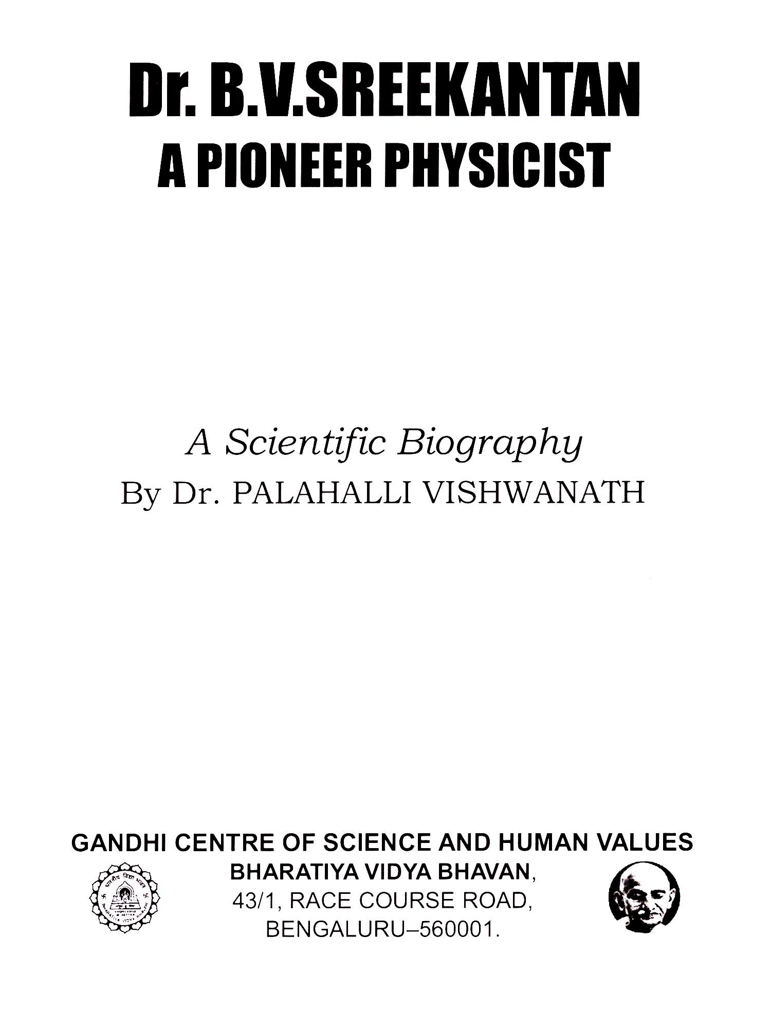 I like to read biographies. They give me a close view of the lives of other people, some who became famous, and some others who in their quiet way made their own contributions to humanity. They show the extraordinary diversity of the human spirit. Our own lives may be quite different from those we are following closely in the narrative. Yet the way the various phases of their lives unfolded provides us with an understanding of the possible outcomes of our own initiatives and actions. It is somewhat like a sneak preview of what lies ahead when we turn the next corner in our own lives. Reading biographies gives me an opportunity to observe how another person faces serious challenges in the real world and how he overcomes them, and grasps the opportunities that bring to him great success, keeps a balanced attitude in sorrow and joy, and in short how he gets through the crucible of life and emerges victorious. It could be the biography of a man like Chandrasekhar, or a woman Marie Curie reading it is always an edifying experience. Reading the biography of Sreekantan is no different. Notwithstanding the remarkable contributions Professor B.V.Sreekantan has made towards building institutions, and to Indian heritage, culture and philosophy, quintessentially he is a physicist. He made pioneering contributions to the fields of cosmic rays, neutrino physics, and X-ray astronomy. Sreekantan's scientific activities have been forerunners or have run parallel to three Nobel Prize winning efforts. In the following pages you will read how he was persuaded to become an experimental physicist by Professor Homi.J. Bhabha, the scientific and technological architect of modern India.