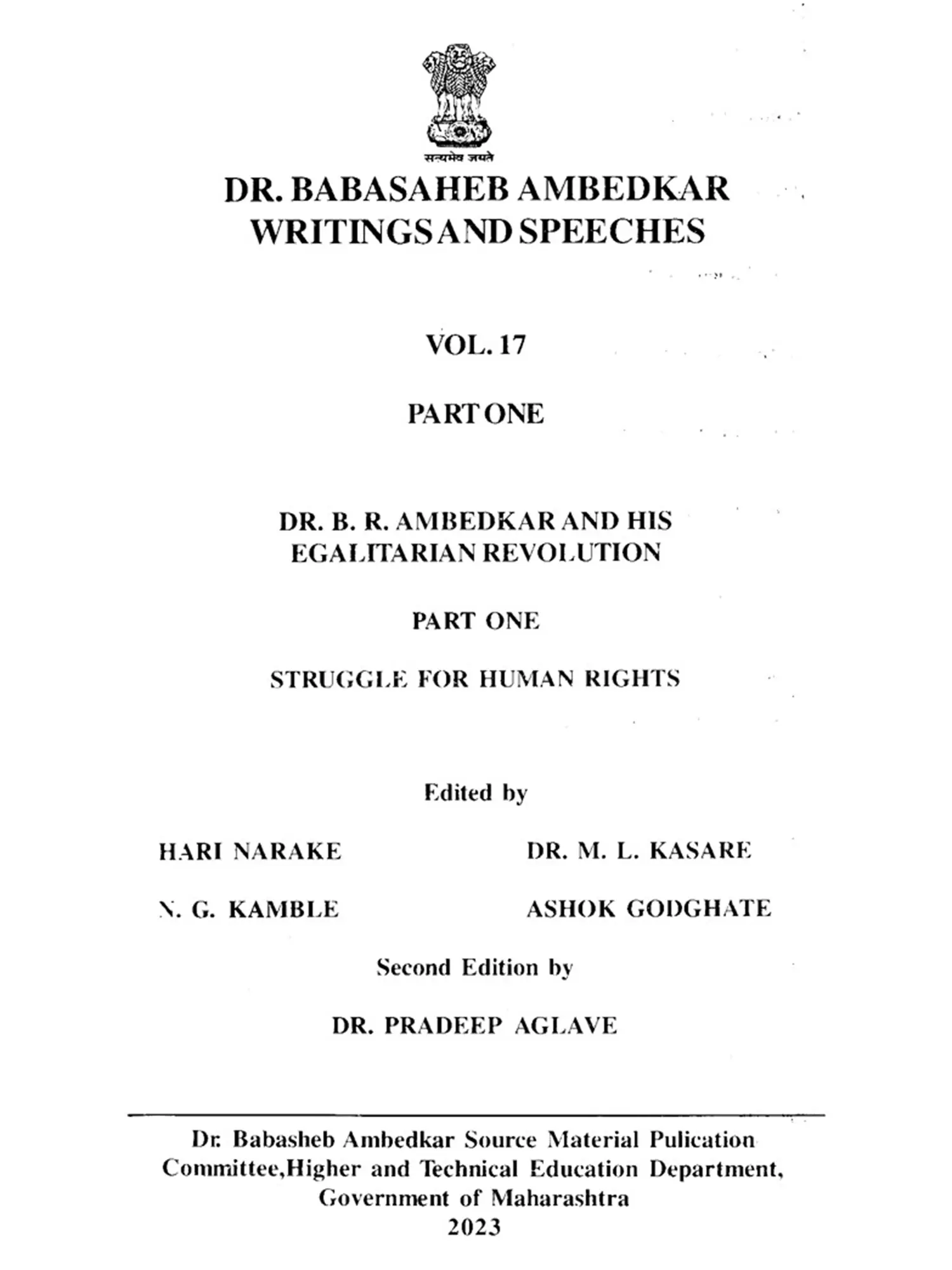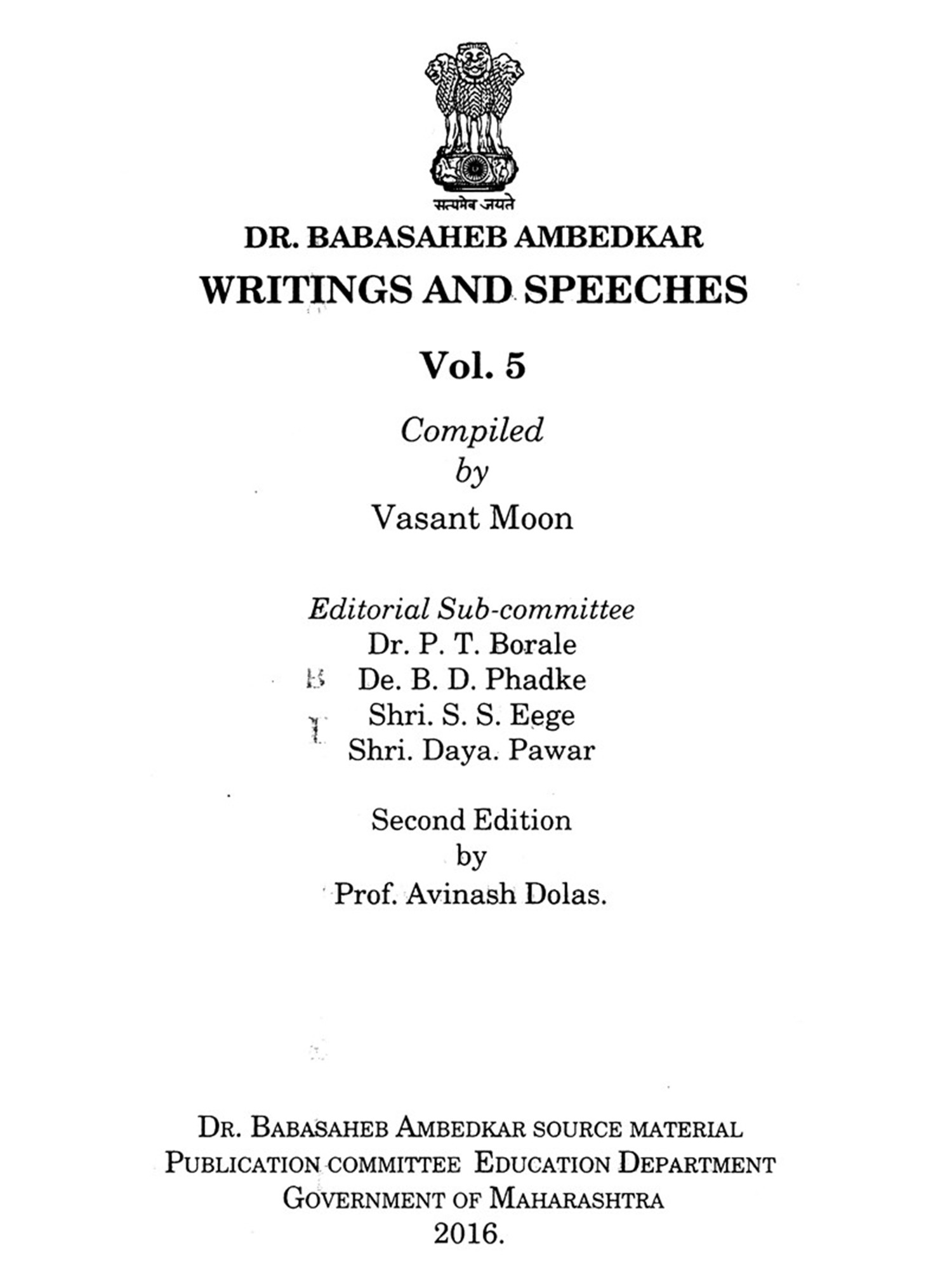 Publisher: Dr. Babasaheb Ambedkar Source Material Publication Committee