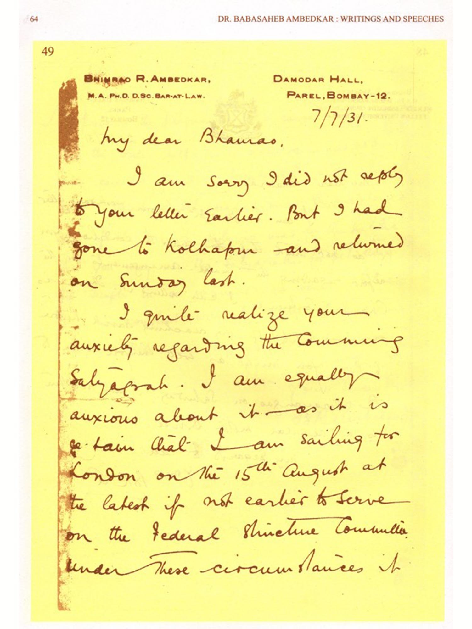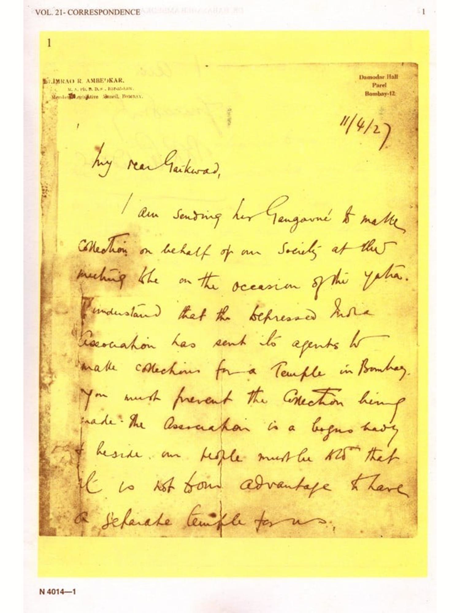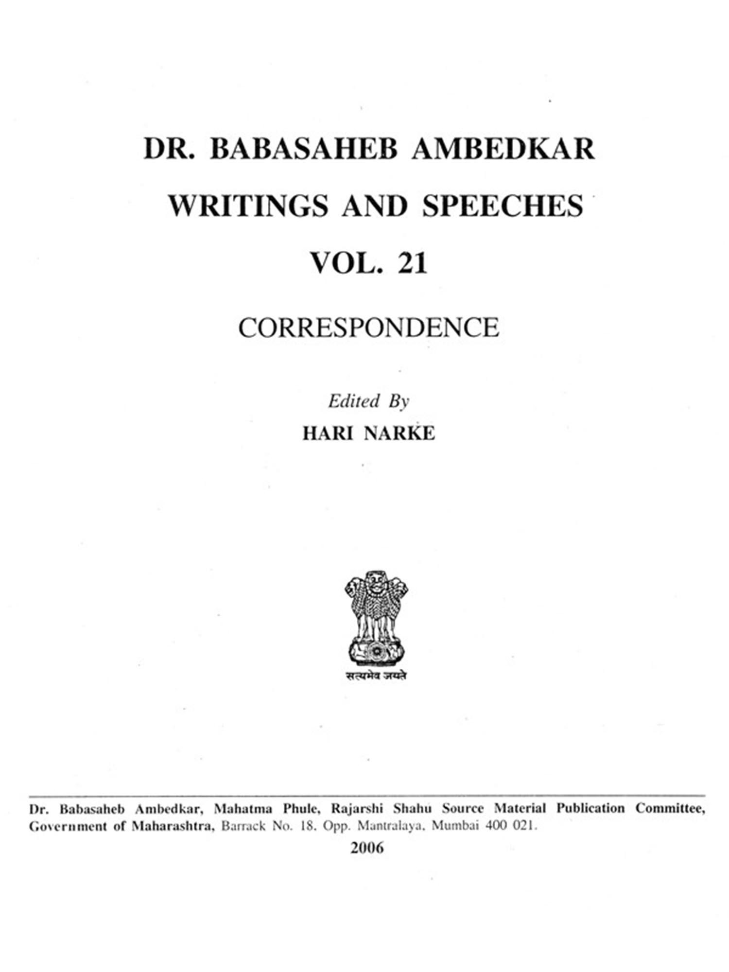 The letters written by Dr. Babasaheb Ambedkar are the source material of Indian Social History. Editor of this volume Prof. Hari Narke, who have been imbibed with the spirit of Ambedkarism and is committed to the cause. I am aware of his zeal to work. I congratulate him for the successful accomplishment. I am extremely happy that this volume No. 21 of Writings and Speeches of Dr. Babasaheb Ambedkar is going to see the light of the day.