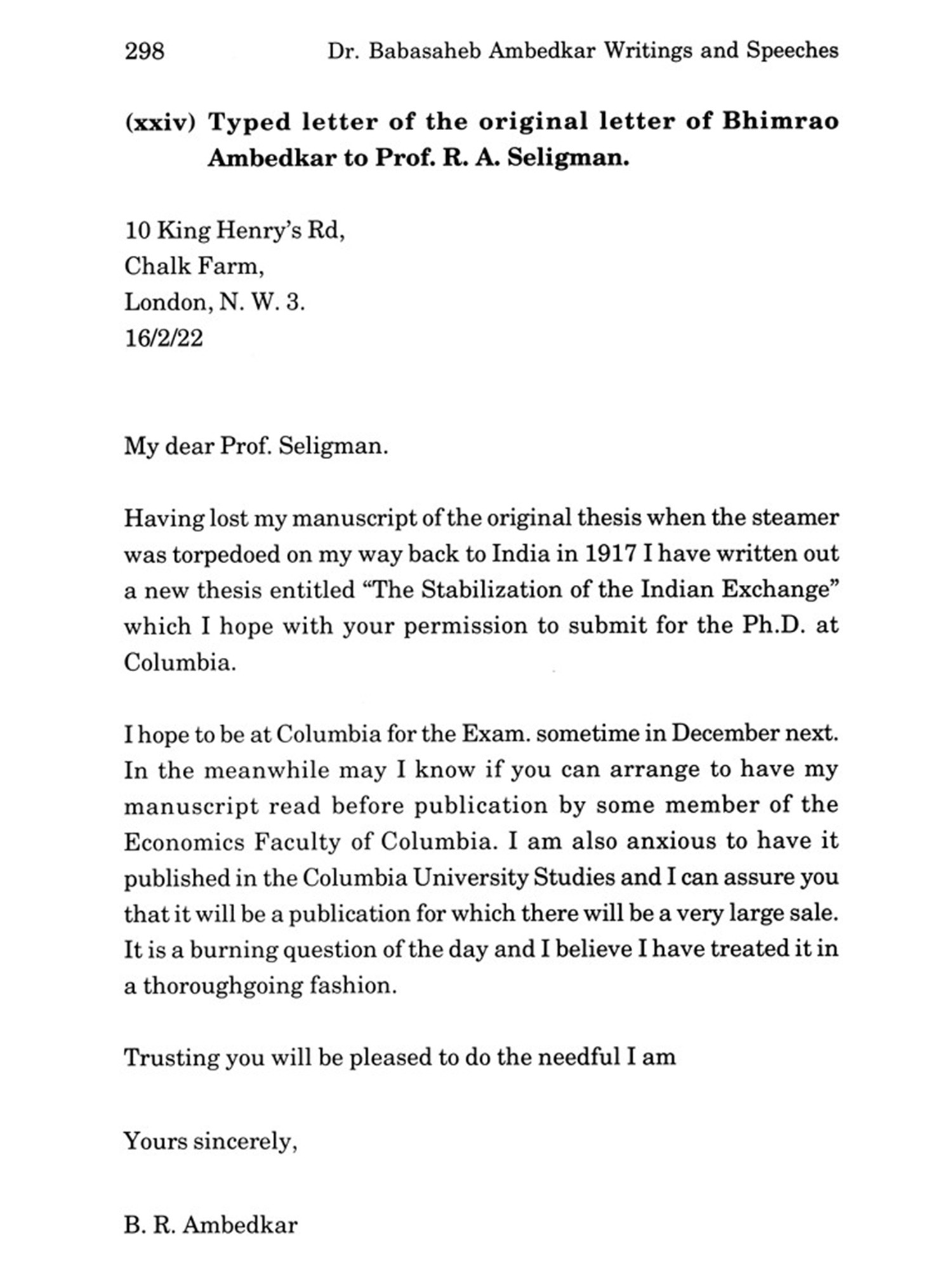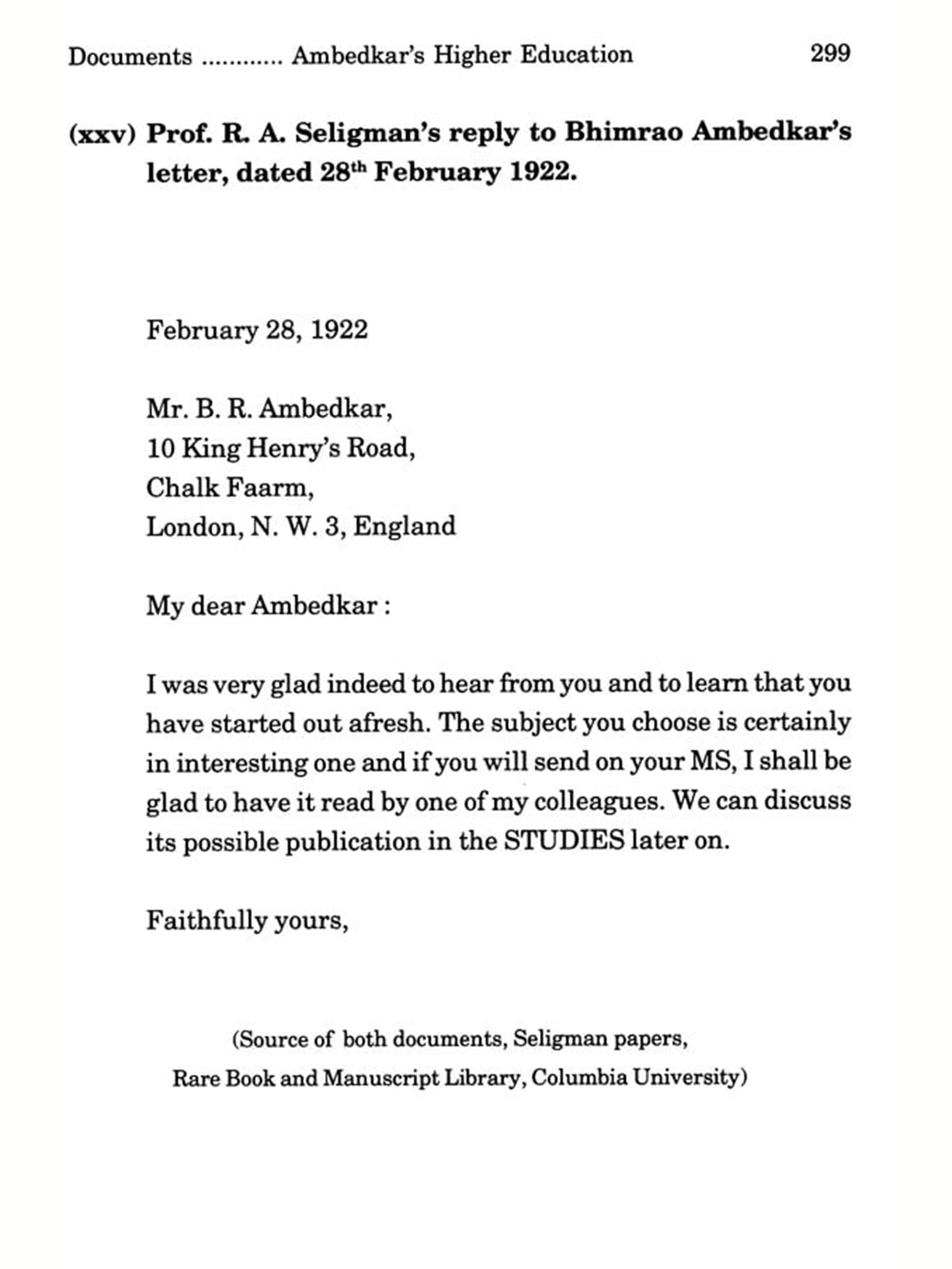 Documents and Correspondence Pertaining to Dr. Babasaheb Ambedkar's Higher Education