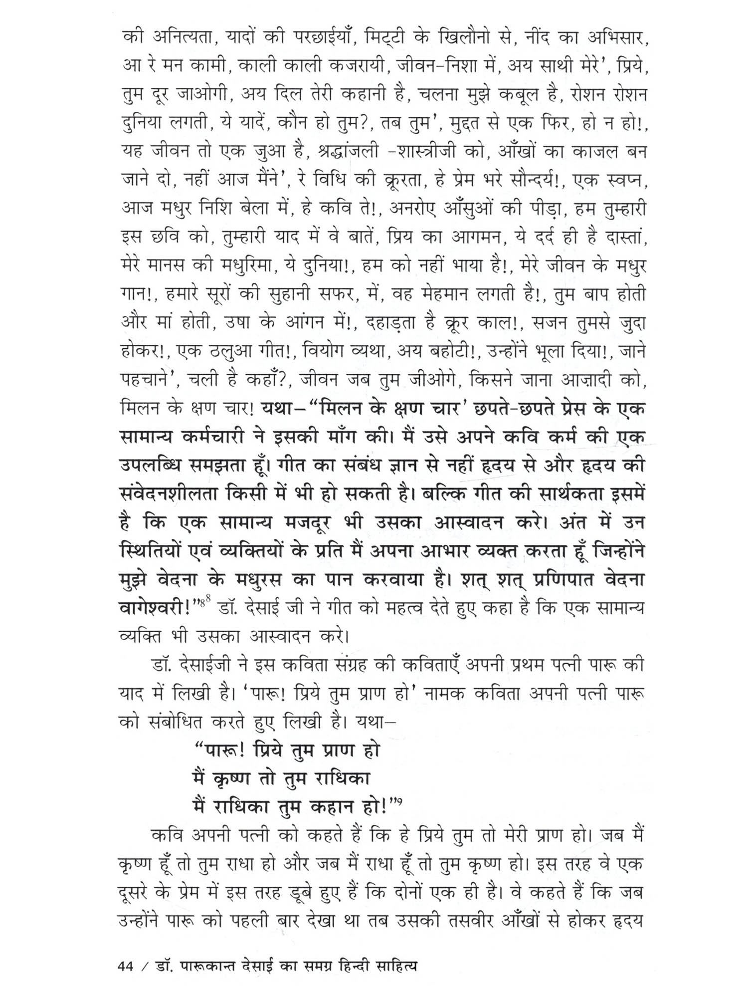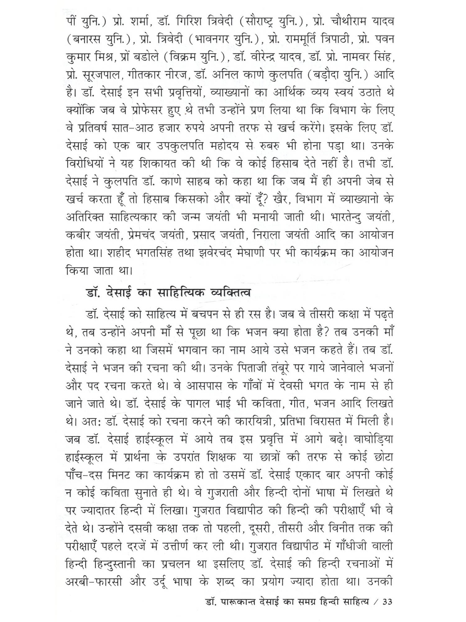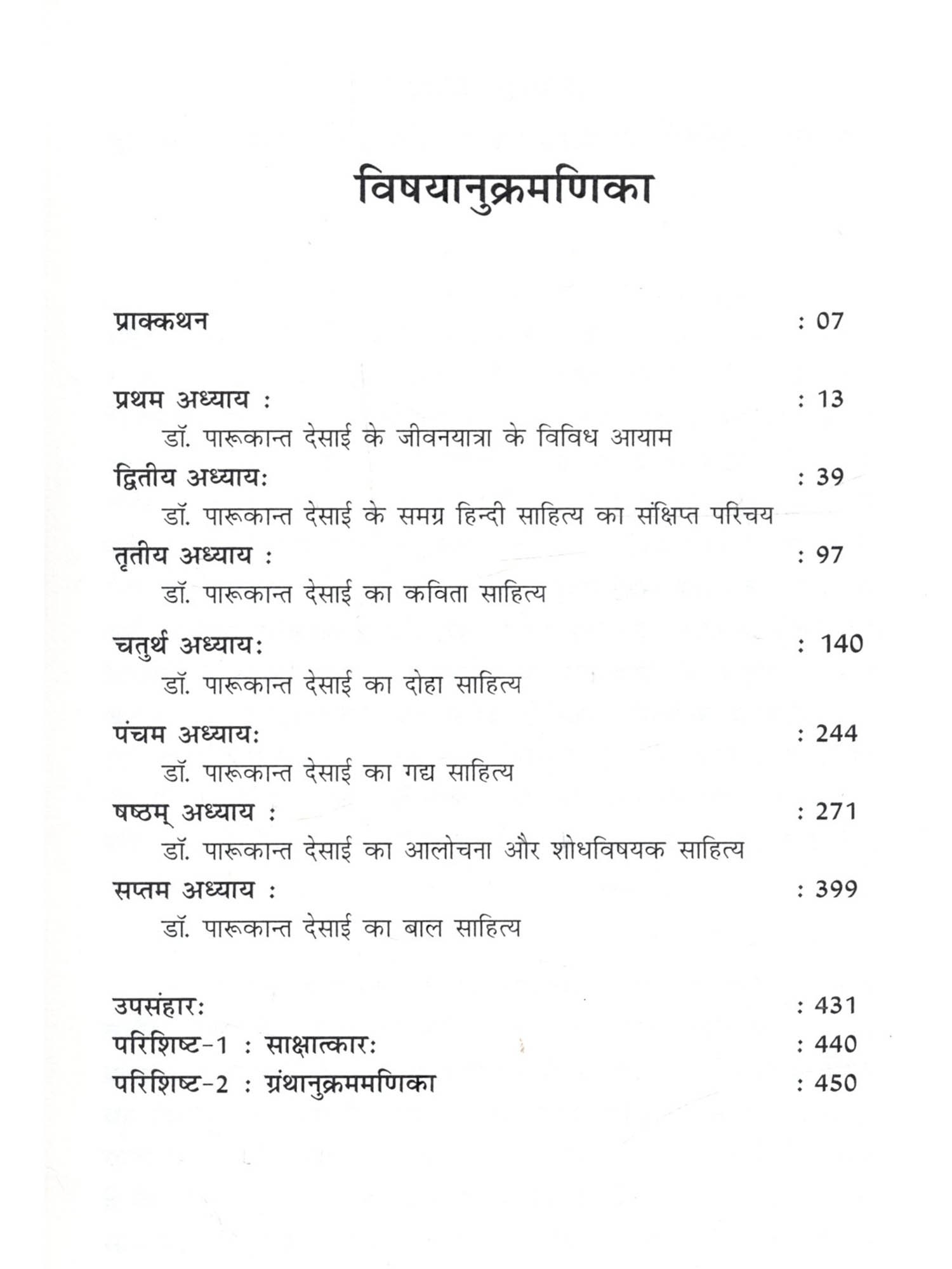 मेरी मातृभाषा गुजराती है फिर भी मैंने हिन्दी भाषा में अध्ययन किया है। में स्नातक कक्षा से ही हिन्दी भाषा से जुड़ी हुई हैं। आज मुझे हिन्दी भाषा अपनी सी लग रही है। भारत के कई राज्यों की बोलचाल में ज्यादातर हिन्दी भाषा का प्रयोग होता है। विश्व में हिन्दी तीसरे नंबर पर बोली जानेवाली भाषा है। इसलिए मैंने हिन्दी भाषा को चुना इस बात की मुझे खुशी हो रही है। हिन्दी के कई साहित्यकारों ने हिन्दी की विभिन्न विधा पर अपनी कलम चलाई है। उसमें ज्यादातर हिन्दी भाषी साहित्यकार ही होते हैं। एक ऐसे साहित्यकार हैं जो अहिन्दी भाषी होने के बावजूद उन्होंने हिन्दी भाषा साहित्य में अपना योगदान दिया है और वह हैं डॉ. पारूकान्त देसाई। मुझे डॉ. दिलीप मेहरा सर और डॉ. हसमुख परमार सर के पास से डॉ. पारूकान्त देसाईजी के बारे में पता चला। मैंने सुना है कि वे गुजराती भाषी हैं फिर भी उन्होंने हिन्दी भाषा में बहुत अच्छा लेखन कार्य किया है। उन्होंने कविता, दोहा, निबंध, आलोचना, बाल साहित्य आदि पर लेखन कार्य किया है। उनके बारे में ये सब सुनकर मुझे उनके समग्र हिन्दी साहित्य पर अध्ययन करने की इच्छा हुई। इसलिए मैंने उनके समग्र साहित्य पर अध्ययन करने का निर्णय लिया। इस तरह डॉ. दिलीप मेहरा सर की सहायता से मैंने 'डॉ. पारूकान्त देसाई का समग्र हिन्दी साहित्य' नामक विषय पर अपने अध्ययन का कार्य शुरू किया। डॉ. पारूकान्त देसाई जी अहिन्दी भाषी प्रदेश के हिन्दी भाषी साहित्यकार हैं। वे कवि, समीक्षक, आलोचक, निबंधकार एवं व्यंग्यकार के रूप में हमारे सामने आते हैं। गुजराती भाषी होने के बावजूद भी उन्होंने हिन्दी भाषा में बहुत ही अच्छी तरह से लेखनकार्य किय के अंतर्गत डॉ. पारूकान्त देसाई के व्यक्तित्व पर प्रकाश डाला गया है। उनके व्यक्तित्व में उनके जन्म, शिक्षा-दीक्षा और अध्यापन कार्य, पारिवारिक जीवन, संघर्षयात्रा आदि को प्रस्तुत किया गया है। साथ ही उनकी साहित्यिक यात्राएँ, विभागीय गतिविधियाँ, साहित्यिक सम्मान एवं पुरस्कार, साहित्यिक व्यक्तित्व के बारे में परिचय दिया गया है। द्वितीय अध्याय 'डॉ. पारूकान्त देसाई के समग्र हिन्दी साहित्य का संक्षिप्त परिचय' के अंतर्गत उनके काव्य संग्रह, दोहा संग्रह, निबंध संग्रह, आलोचना, बाल साहित्य का संक्षिप्त परिचय दिया गया है। तृतीय अध्याय 'डॉ. पारूकान्त देसाई का कविता साहित्य' के अंतर्गत 'बिजली के फूल', 'मिलन के क्षण चार', 'भेदकु खोला कबिरा बोला', 'सूखं सेमल की वृत्तों पर', कविता संग्रह के कथ्यपक्ष और शिल्पपक्ष को दर्शाया गया है। कथ्यपक्ष के अंतर्गत विभिन्न विषयों पर आधारित कविताओं की चर्चा की गई है। शिल्प पक्ष के अंतर्गत भाषा-शैली, शब्द प्रयोग की चर्चा की गई है। चतुर्थ अध्याय 'डॉ. पारूकान्त देसाई क