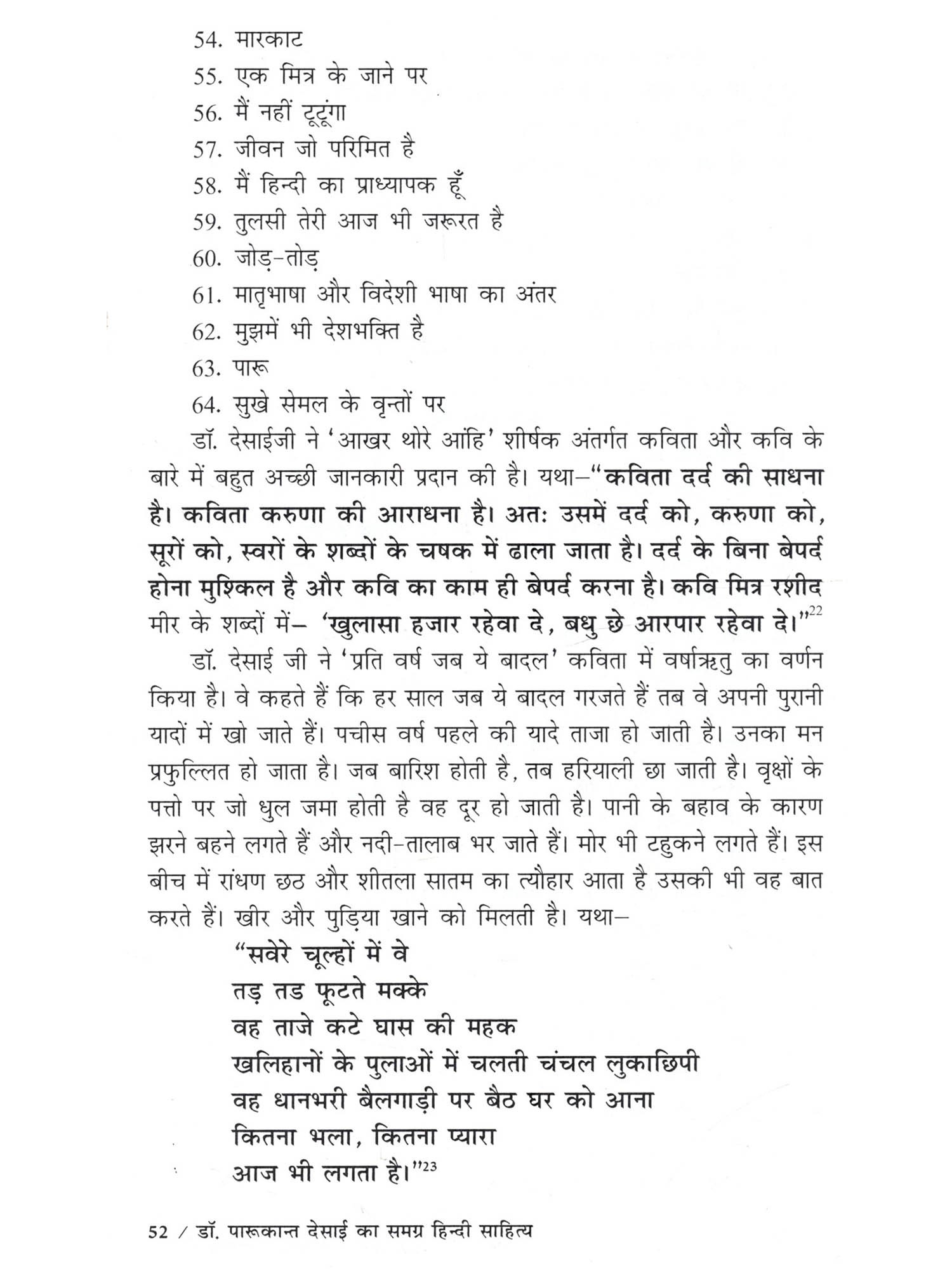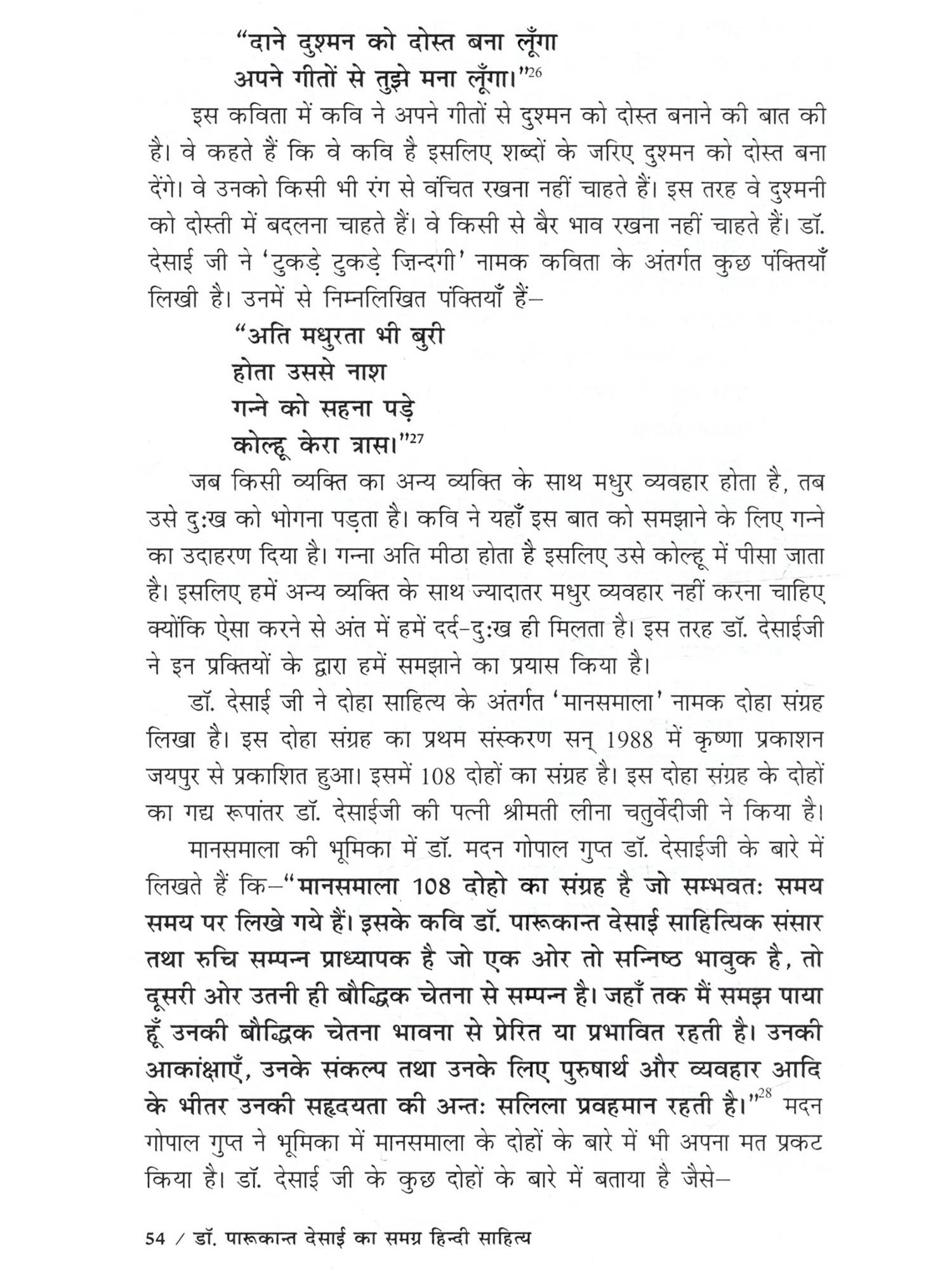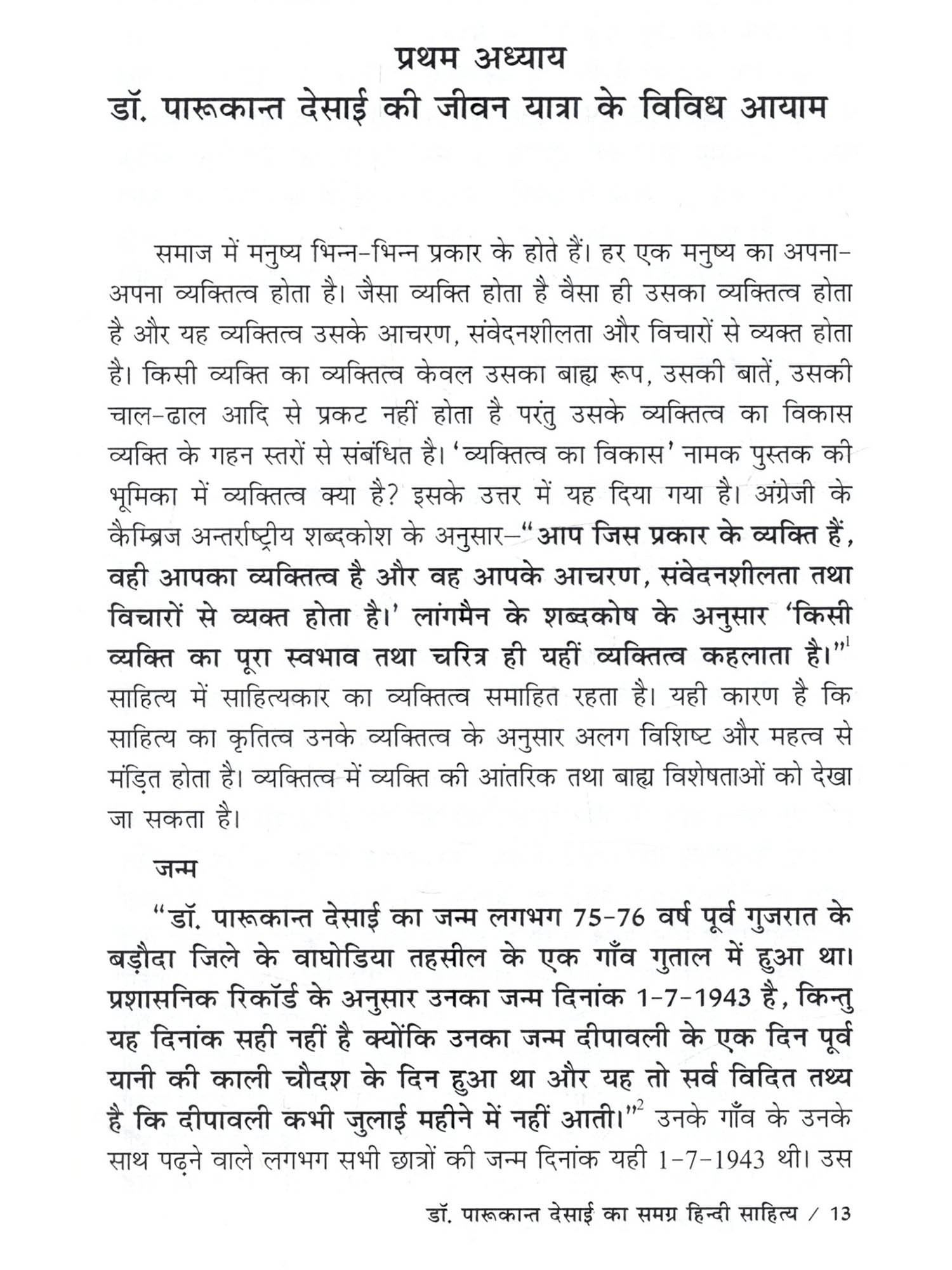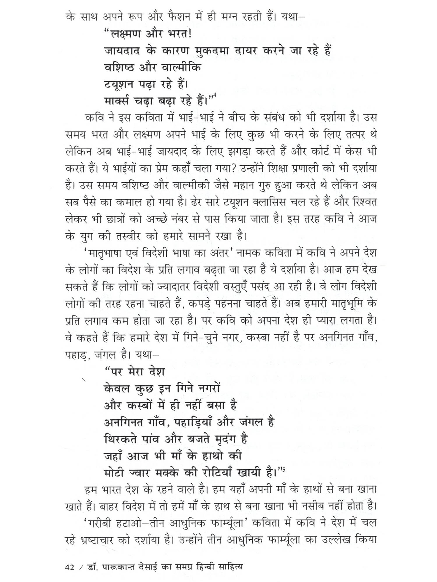 मेरी मातृभाषा गुजराती है फिर भी मैंने हिन्दी भाषा में अध्ययन किया है। में स्नातक कक्षा से ही हिन्दी भाषा से जुड़ी हुई हैं। आज मुझे हिन्दी भाषा अपनी सी लग रही है। भारत के कई राज्यों की बोलचाल में ज्यादातर हिन्दी भाषा का प्रयोग होता है। विश्व में हिन्दी तीसरे नंबर पर बोली जानेवाली भाषा है। इसलिए मैंने हिन्दी भाषा को चुना इस बात की मुझे खुशी हो रही है। हिन्दी के कई साहित्यकारों ने हिन्दी की विभिन्न विधा पर अपनी कलम चलाई है। उसमें ज्यादातर हिन्दी भाषी साहित्यकार ही होते हैं। एक ऐसे साहित्यकार हैं जो अहिन्दी भाषी होने के बावजूद उन्होंने हिन्दी भाषा साहित्य में अपना योगदान दिया है और वह हैं डॉ. पारूकान्त देसाई। मुझे डॉ. दिलीप मेहरा सर और डॉ. हसमुख परमार सर के पास से डॉ. पारूकान्त देसाईजी के बारे में पता चला। मैंने सुना है कि वे गुजराती भाषी हैं फिर भी उन्होंने हिन्दी भाषा में बहुत अच्छा लेखन कार्य किया है। उन्होंने कविता, दोहा, निबंध, आलोचना, बाल साहित्य आदि पर लेखन कार्य किया है। उनके बारे में ये सब सुनकर मुझे उनके समग्र हिन्दी साहित्य पर अध्ययन करने की इच्छा हुई। इसलिए मैंने उनके समग्र साहित्य पर अध्ययन करने का निर्णय लिया। इस तरह डॉ. दिलीप मेहरा सर की सहायता से मैंने 'डॉ. पारूकान्त देसाई का समग्र हिन्दी साहित्य' नामक विषय पर अपने अध्ययन का कार्य शुरू किया। डॉ. पारूकान्त देसाई जी अहिन्दी भाषी प्रदेश के हिन्दी भाषी साहित्यकार हैं। वे कवि, समीक्षक, आलोचक, निबंधकार एवं व्यंग्यकार के रूप में हमारे सामने आते हैं। गुजराती भाषी होने के बावजूद भी उन्होंने हिन्दी भाषा में बहुत ही अच्छी तरह से लेखनकार्य किय के अंतर्गत डॉ. पारूकान्त देसाई के व्यक्तित्व पर प्रकाश डाला गया है। उनके व्यक्तित्व में उनके जन्म, शिक्षा-दीक्षा और अध्यापन कार्य, पारिवारिक जीवन, संघर्षयात्रा आदि को प्रस्तुत किया गया है। साथ ही उनकी साहित्यिक यात्राएँ, विभागीय गतिविधियाँ, साहित्यिक सम्मान एवं पुरस्कार, साहित्यिक व्यक्तित्व के बारे में परिचय दिया गया है। द्वितीय अध्याय 'डॉ. पारूकान्त देसाई के समग्र हिन्दी साहित्य का संक्षिप्त परिचय' के अंतर्गत उनके काव्य संग्रह, दोहा संग्रह, निबंध संग्रह, आलोचना, बाल साहित्य का संक्षिप्त परिचय दिया गया है। तृतीय अध्याय 'डॉ. पारूकान्त देसाई का कविता साहित्य' के अंतर्गत 'बिजली के फूल', 'मिलन के क्षण चार', 'भेदकु खोला कबिरा बोला', 'सूखं सेमल की वृत्तों पर', कविता संग्रह के कथ्यपक्ष और शिल्पपक्ष को दर्शाया गया है। कथ्यपक्ष के अंतर्गत विभिन्न विषयों पर आधारित कविताओं की चर्चा की गई है। शिल्प पक्ष के अंतर्गत भाषा-शैली, शब्द प्रयोग की चर्चा की गई है। चतुर्थ अध्याय 'डॉ. पारूकान्त देसाई क