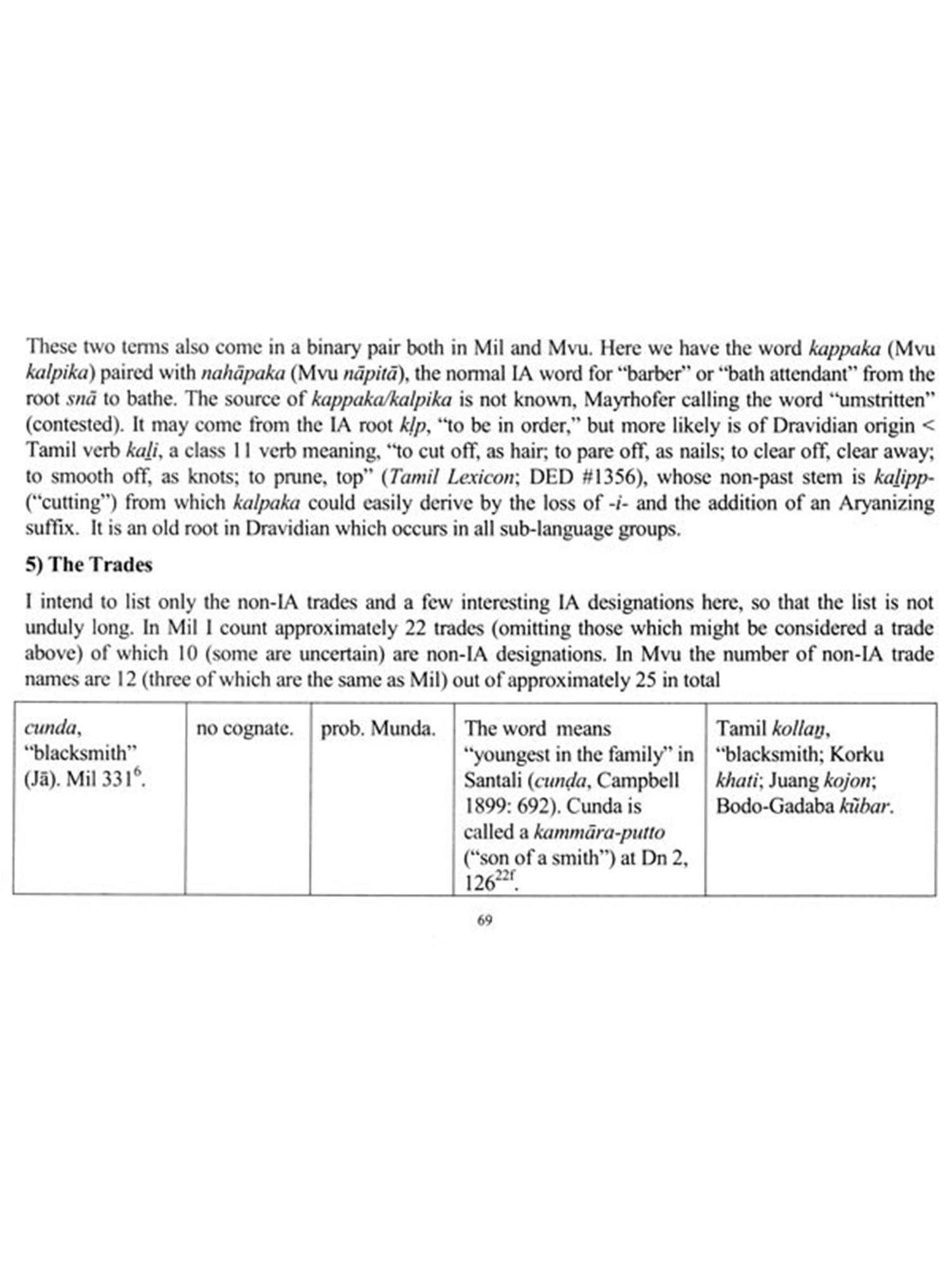 Yet progress has been made, and an increasing number of linguists are waking up to the importance of native languages in their interactions with IA culture. It has been now 167 years since Robert Caldwell published his important study on the Dravidian languages in 1856 (first edition; second edition 1875). He was the first to outline the criteria by which one might determine whether a Sanskrit word had a Dravidian source, but it was not until the work of Murray Emeneau and Thomas Burrow in the mid to late twentieth century that indigenous linguistic studies were given a solid foundation with the publication of the Dravidian Etymological Dictionary (1961, 1984) and the development and evolution of the Indian Linguistic Area theory, the validity of which has been tested and proven time and time again by Emeneau himself and those who followed his work, like Colin Masica, Kamil Zvelebil, Bhadriraju Krishnamurti, Andrée Sjoberg, Franklin Southworth, and many others. Franciscus Kuiper and his student Michael Witzel have provided a similar theoretical foundation for the Munda and Austro-Asiatic languages, as has David Stampe et al., with his important, and still growing, Munda and Mon-Khmer Etymological dictionaries. In the last several decades important linguistic studies by such scholars as Mikhail Andronov, Kamil Zvelebil, Sanford Steever, Arno Lehman, Bhadriraju Krishnamurti (for Dravidian) and Hans Pinnow, Gregory Anderson, John Peterson, Toshiki Osada (for Munda) have provided a rigorous theoretical phonological, morphological and syntactical understanding of the different Dravidian and Munda languages and their relation to IA. Indispensable also is Manfred Mayrhofer's work on Old Indo-Aryan etymologies; although he has often been accused of having an Indo-European bias, he nevertheless was the first Indo-European linguist to fully acknowledge the influence of the indigenous languages on Old and Middle Indic. Mayrhofer's comprehensive work on Sanskrit etymology has shown that, inter alia, the study of Middle Indic word forms (i.e. Pali and other Prakrits) and the research into and analysis of the non-Aryan languages, like Dravidian, Munda and others known and unknown, can yield important insights into the linguistic history of India through understanding the evolution and interaction of all its many languages. This book is a modest contribution to that goal.