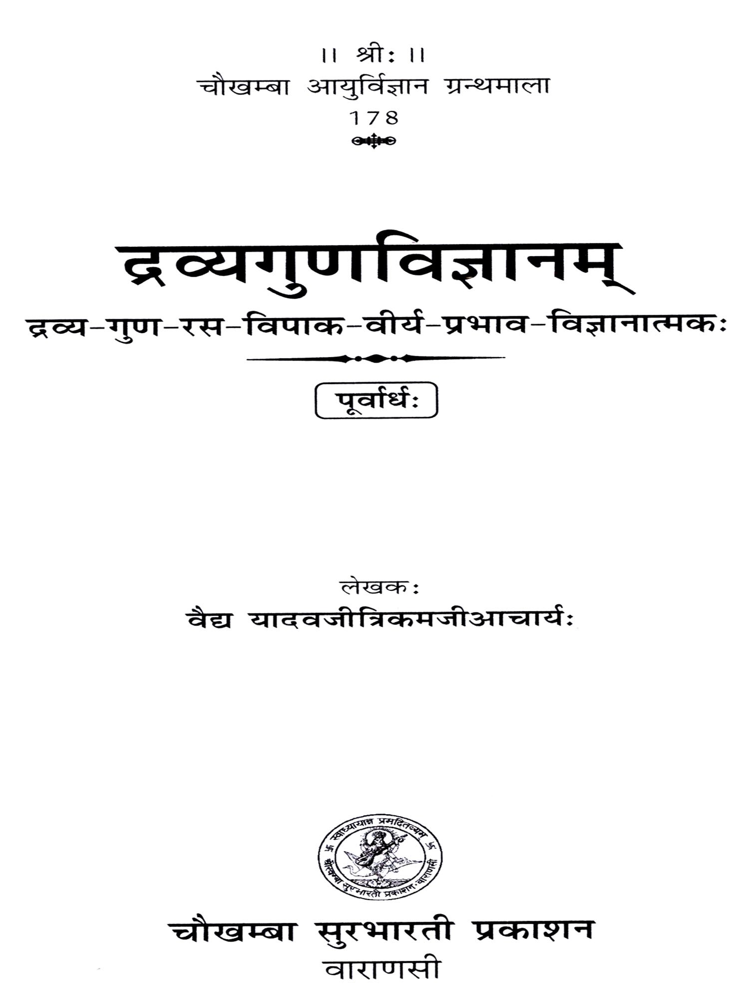 द्रव्यगुणविज्ञानम्: Dravyaguna Vijnana- Scientific of Matter, Quality, Taste, Consequence, Semen, Effect (Set of 2 Volumes)