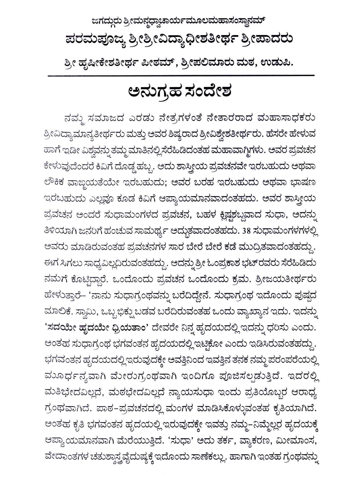 ತದ್ಧಿ ತಪಸ್ತದ್ಧಿ ತಪಃ- Taddhi Tapastaddhi Tapah- In the Discourses of Srividyamanyatirtha thoughts Present in the Articles (Kannada)