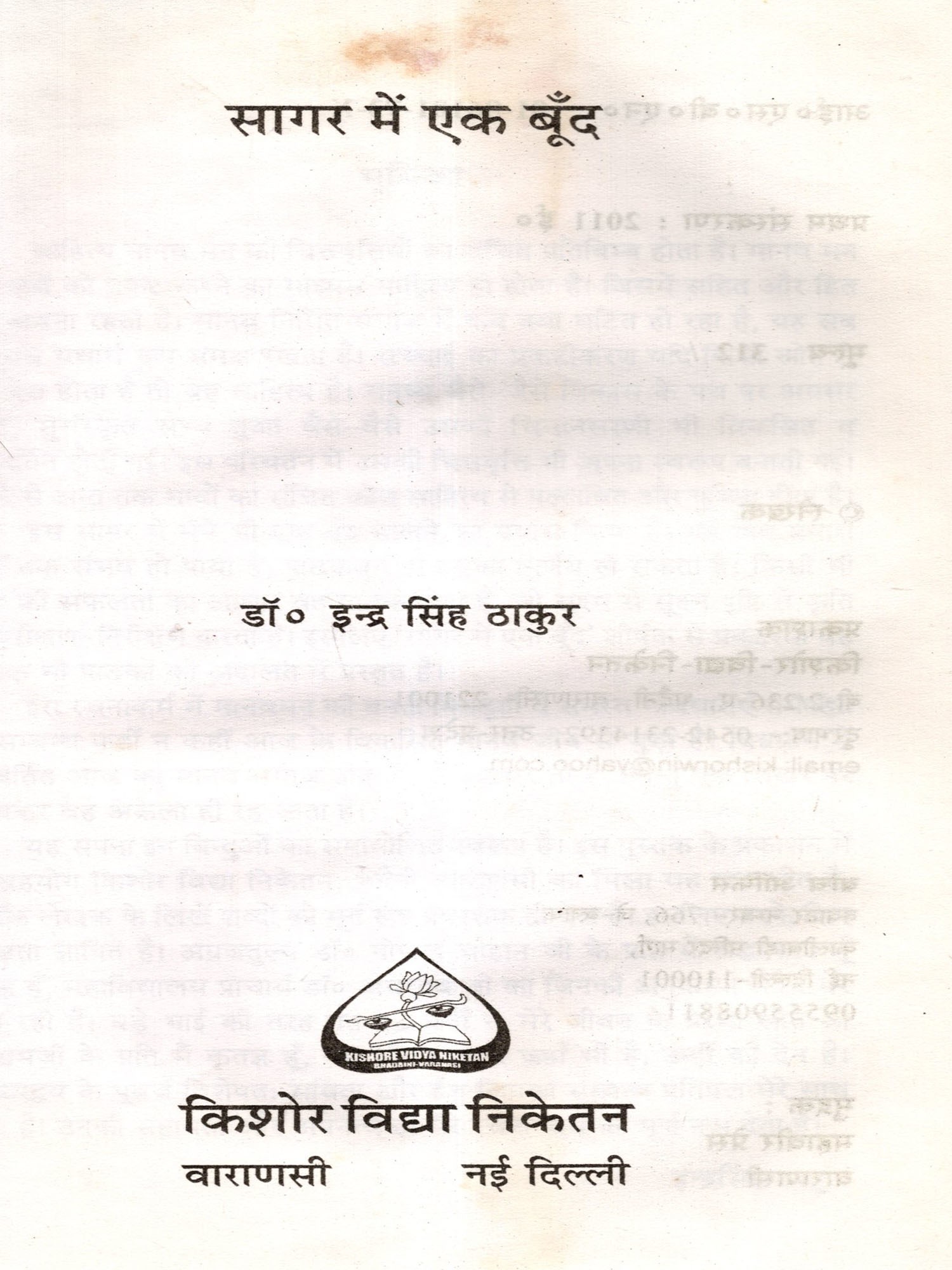 इस सागर में मैंने भी एक बूँद डालने का प्रयास किया है। यह लघु प्रयास कहाँ तक संभव हो पाया है, पाठकवर्ग ही इसका निर्णय ले सकता है। किसी भी कृति की सफलता का आधार वह पाठक होता है, जो सूक्ष्म से सूक्ष्म दृष्टि से कृति का परीक्षण-निरीक्षण करता है। इसलिए 'सागर में एक बूँद' शीर्षक से प्रकाशित यह पुस्तक भी पाठकों की अदालत में प्रस्तुत है।