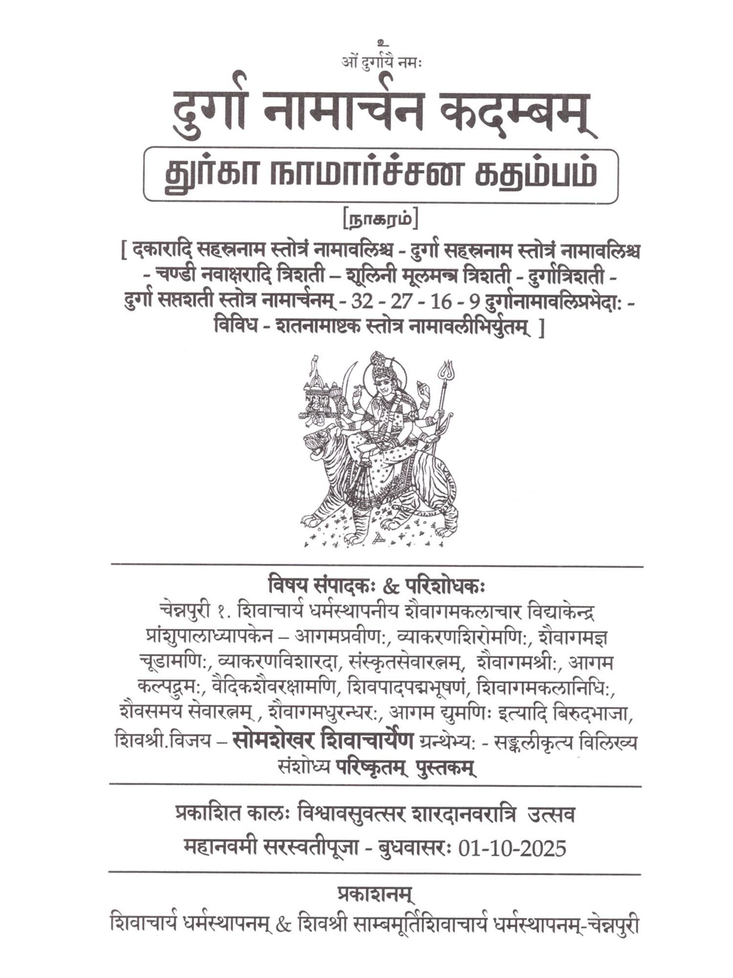दुर्गा नामार्चन कदम्बम् - துர்கா நாமார்ச்சன கதம்பம் [நாகரம் ]: Durga Namarchana Kadambam
