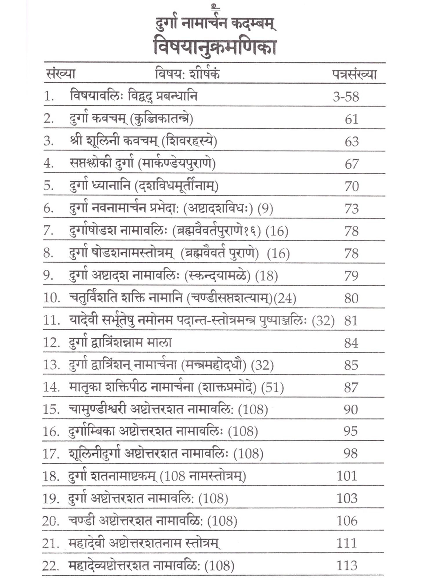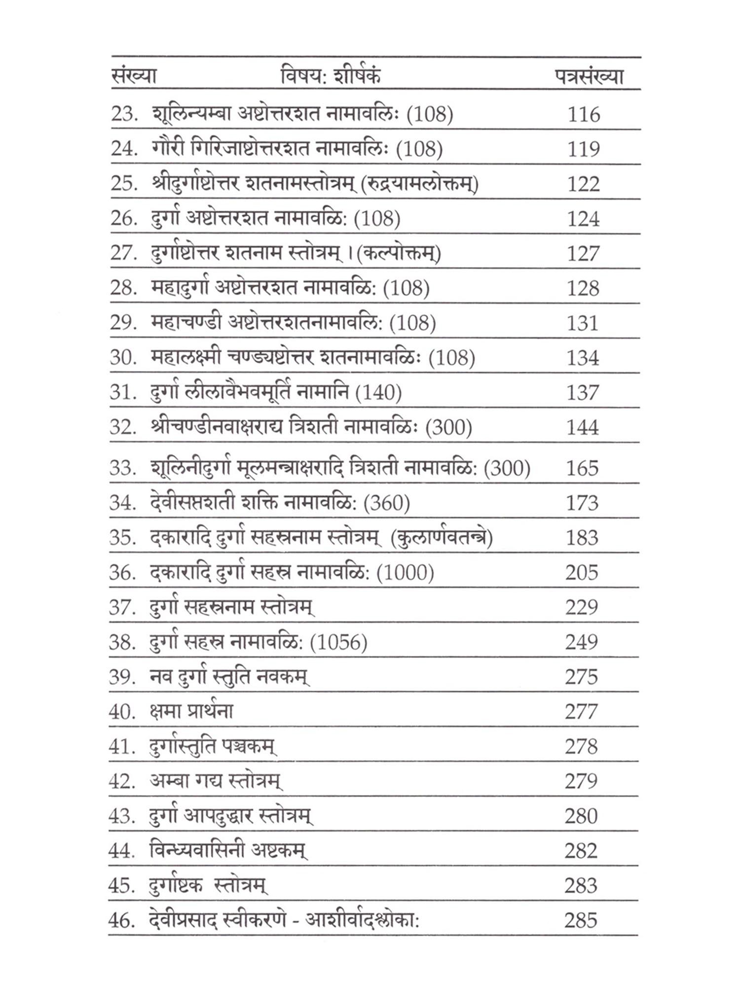 [ Dakaradi Sahasranama Stotram Namavali Cha Durga Sahasranama Stotram Namavali Chandi Navaksharadi Trishati - Shulini Moolmantra Trishati - Durga Trishati -Durga Saptashati Stotra Namaarchanam -32-27-16-9 Durganamavali Prabhedah-Various - Shatanam Ashtaka Stotra Namavali Bhiryutam