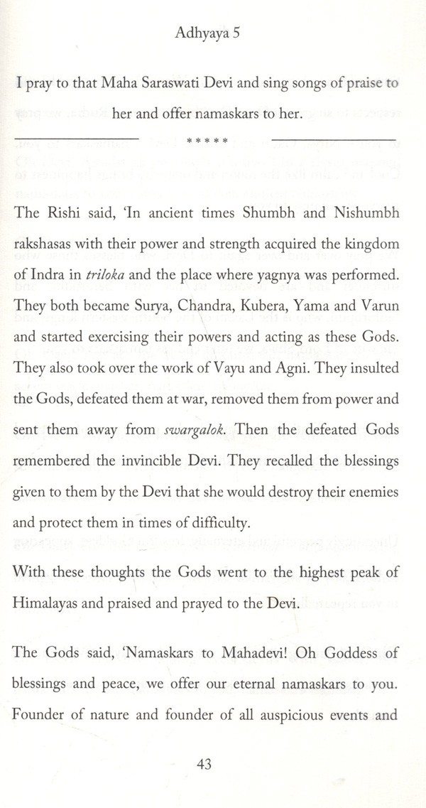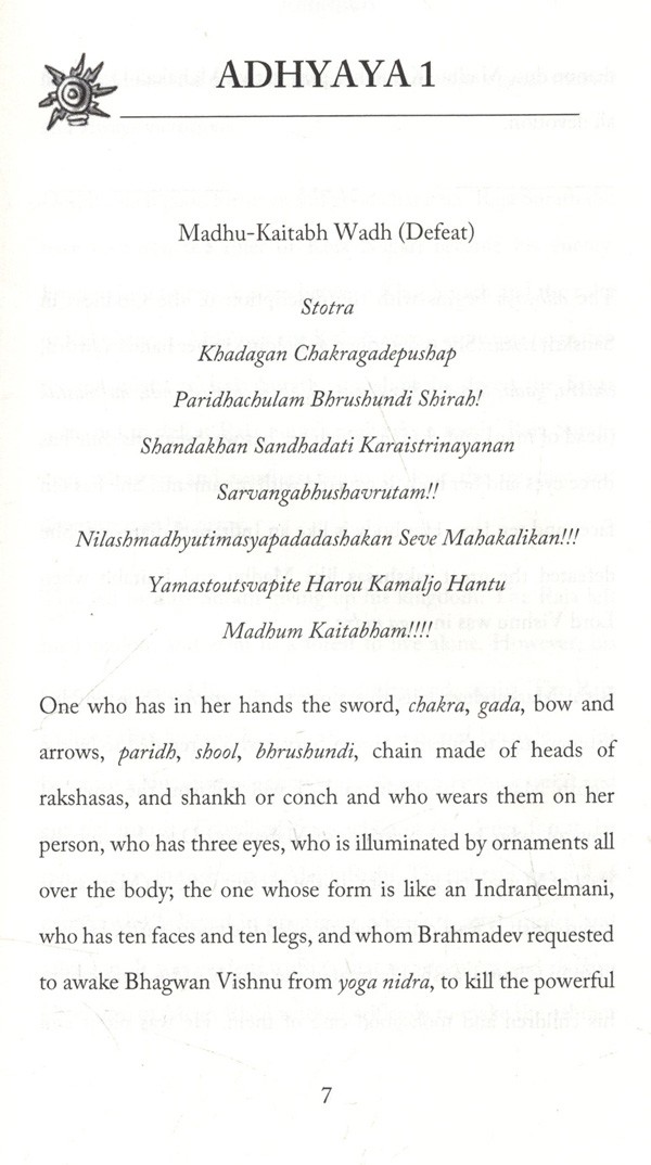 I have ventured to translate Ma Durga's Sapta-Shati from its Marathi original and reproduce the same in English so that it may be of use to modern-day readers, many of whom may not be familiar with the original story.