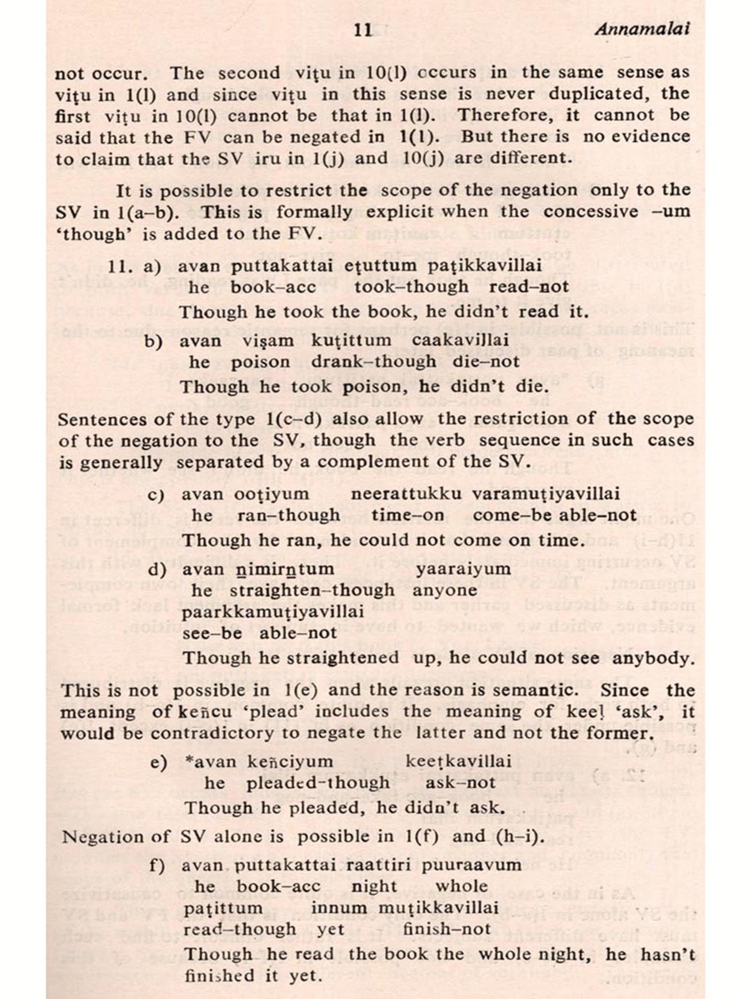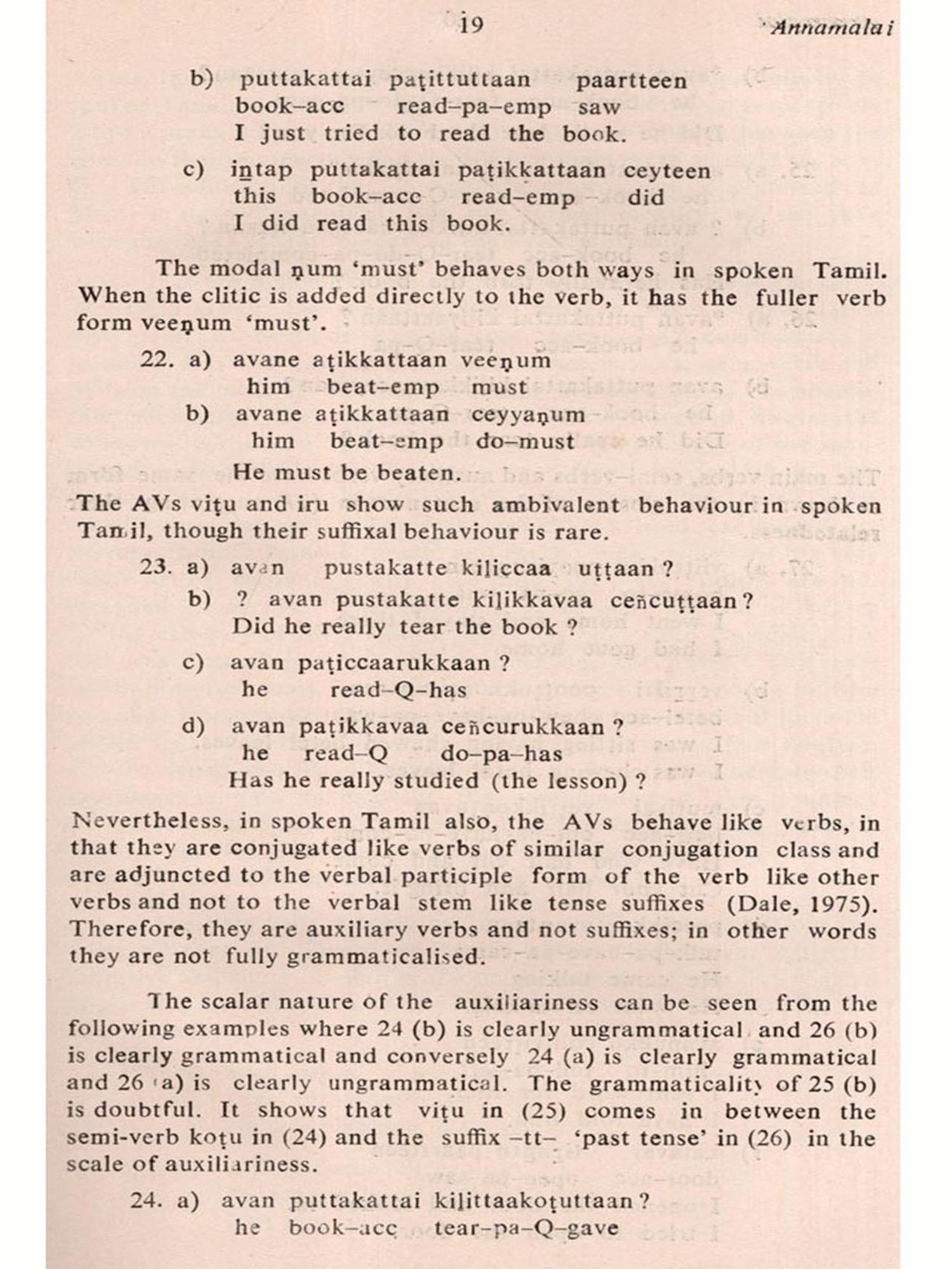 I owe much to the seen and unseen scholars who outnumber those expressly acknowledged in the references and whose work has influenced my thinking on the subject. I am thankful to the colleagues at the Institute, to the participants in the Seminar on Dravidian Aspectual System which I organised on behalf of the School in Bangalore in May 1977 and to the students and scholars who attended my lectures on the subject at the School in Trivandrum in January 1978, whose questions clarified my thinking.