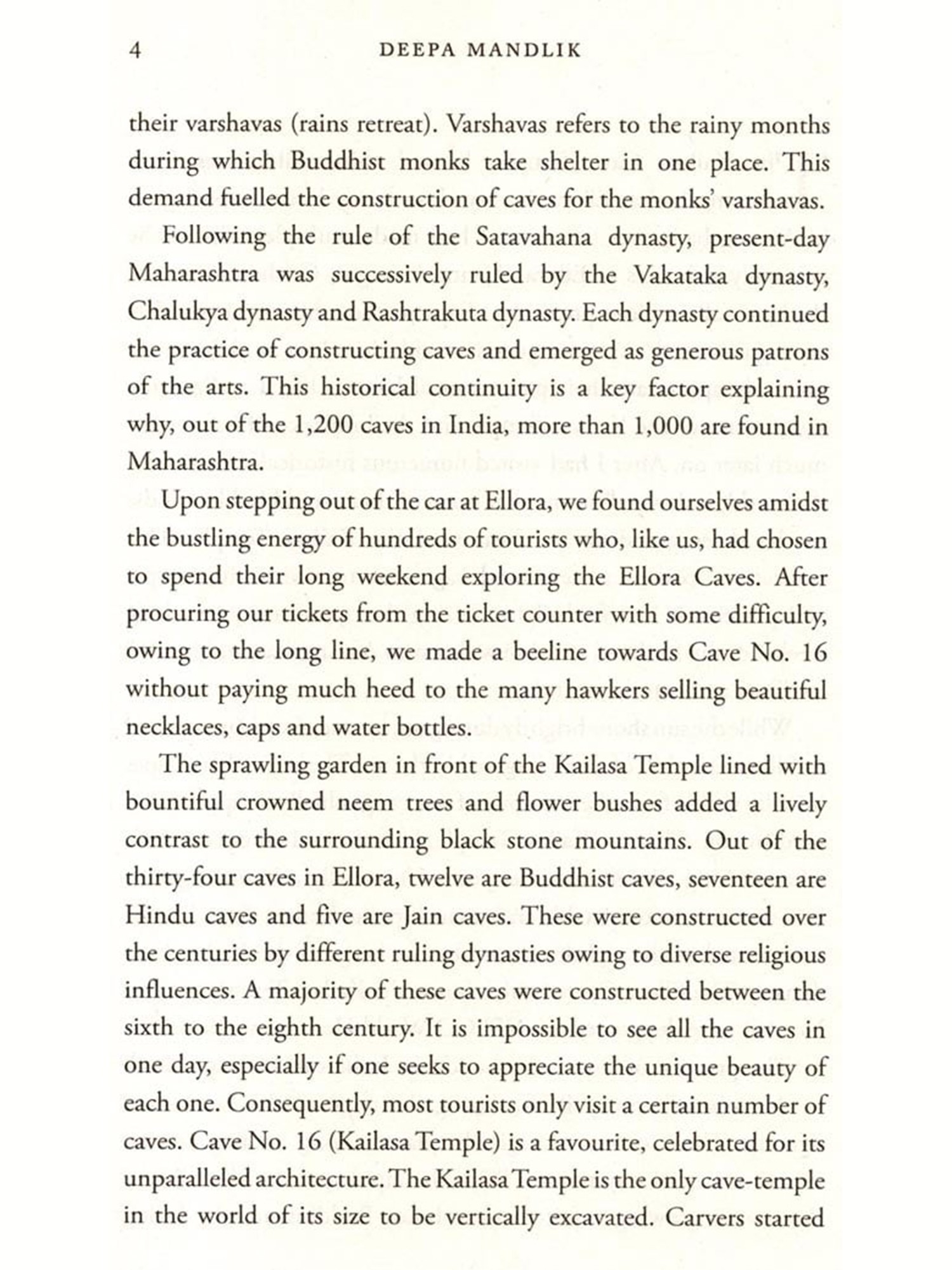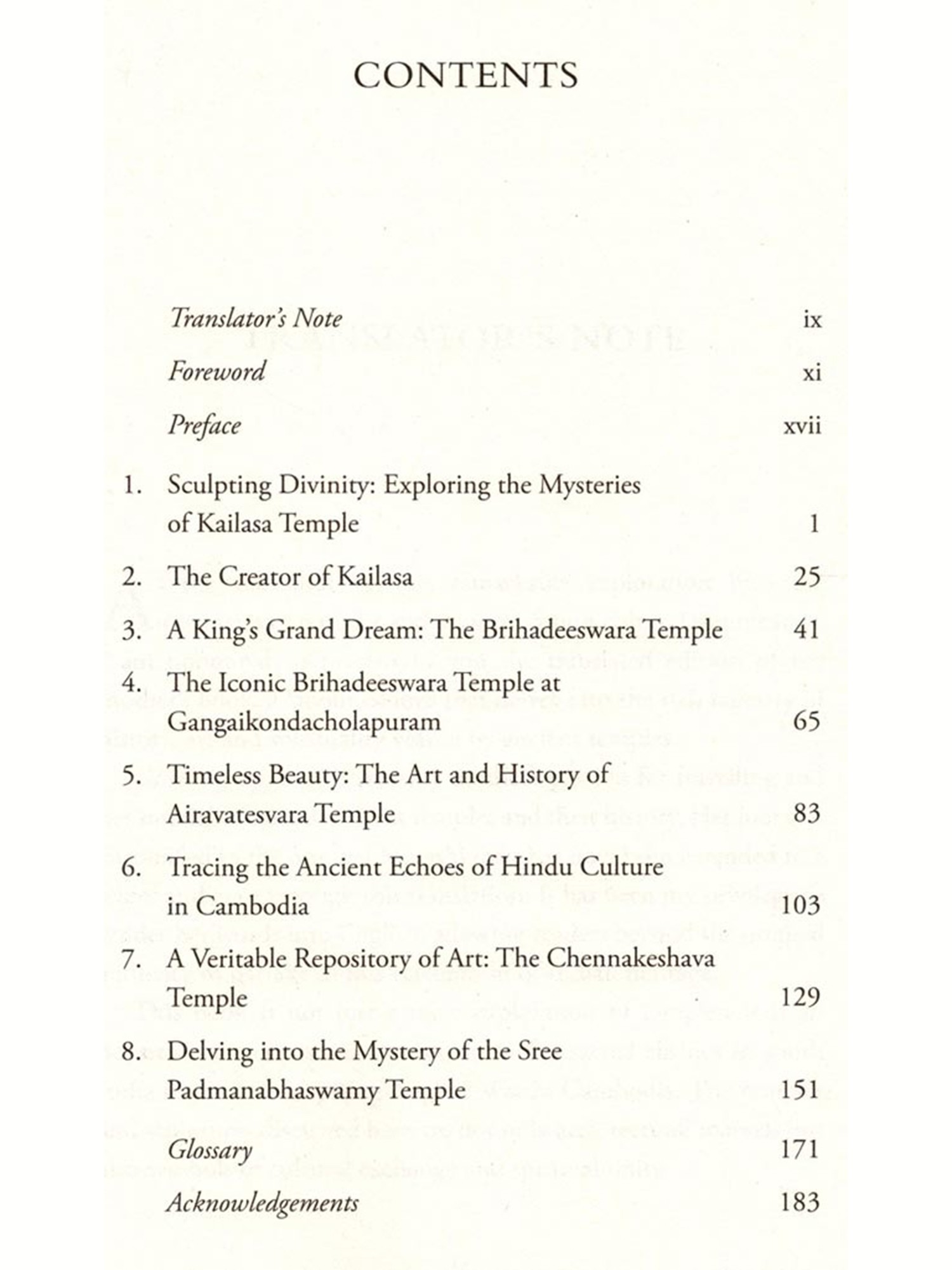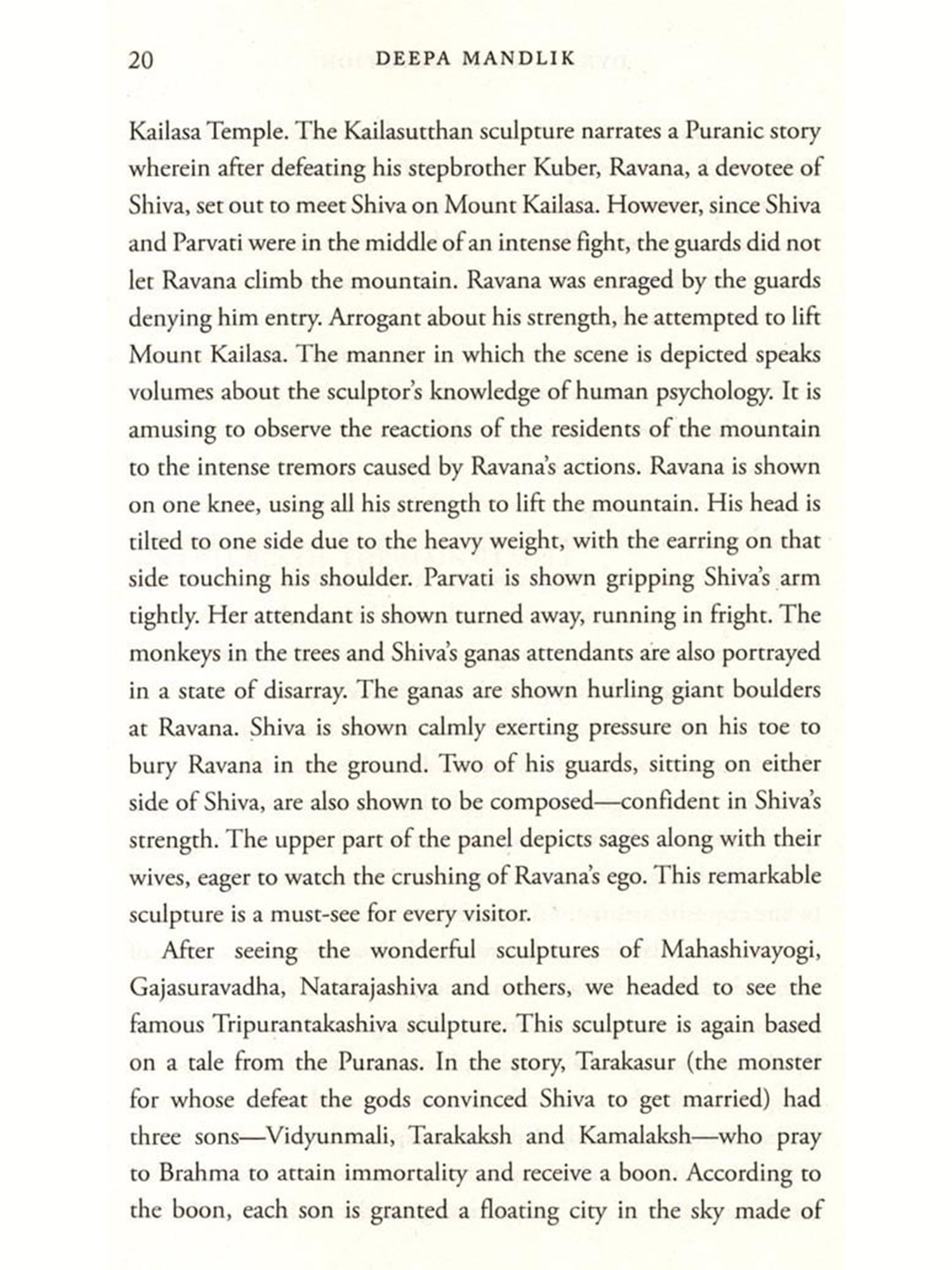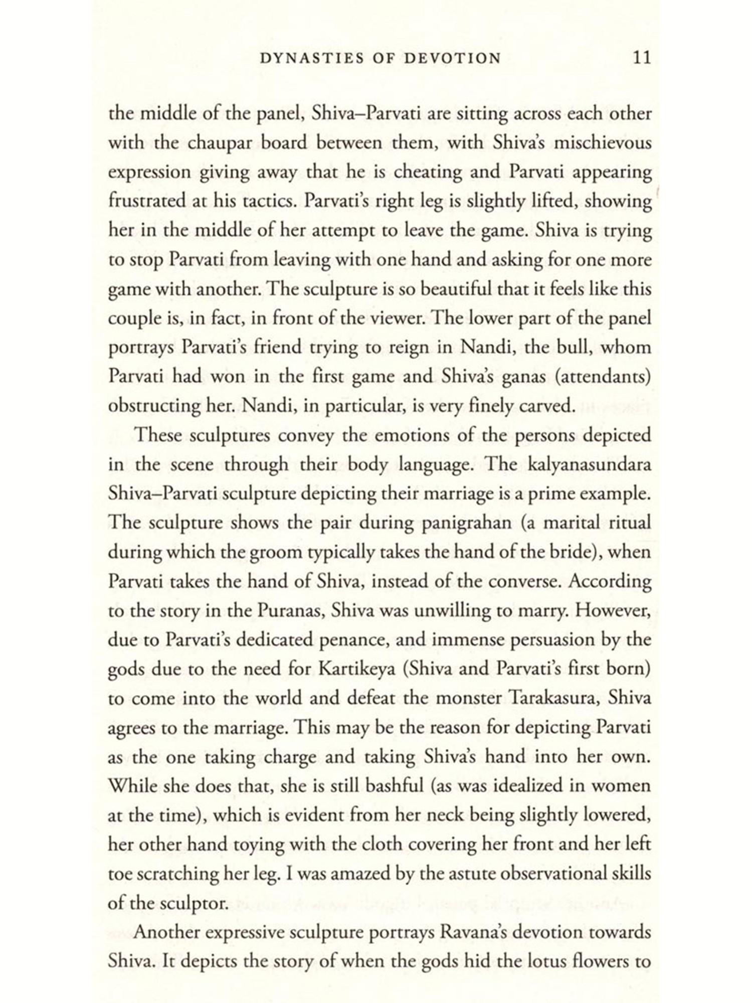 For centuries, temples have functioned not just as places of worship but also social and cultural centres, offering both a connection to the divine and entertainment in the form of music and dance as respite from everyday life. In Dynasties of Devotion, Deepa Mandlik explores seven ancient temples across India and Cambodia, and meticulously examines historical contexts and mythological stories associated with each temple. At the Kailasa Temple in Ellora, Maharashtra, she is struck by the visual representation of fertility and abundance-Goddess Lakshmi, elegantly sitting on a lotus, surrounded by four clephants showering her with rain. Through the dancing sculptures of Shiva and Parvati at the magnificent Brihadeeswara Temple in Tamil Nadu, Deepa reveals that this Chola-dynasty temple was once a prestigious platform for Bharatanatyam with nearly 400 dancers and 250 musicians in residence. At the Airavatesvara Temple in Tamil Nadu, she experiences the wonder of the saptaswara (seven-note) steps which, when struck lightly, produce the sound of the seven musical notes. From these to the other Brihadeeswara Temple at Gangaikondacholapuram and the Chennakeshava Temple in Karnataka and the Sri Padmanabhaswamy Temple in Kerala to Angkor Wat and Bayon in Cambodia. Deepa brings to life the rich tapestry of history, art and spirituality that is woven through them. Marked by vivid storytelling, Dynasties of Dreation is an ode to the enduring legacy of India's temple culture; it is at once an intimate glimpse into these spaces for the curious reader and scholar and a handy walking guide for the spellbound tourist.