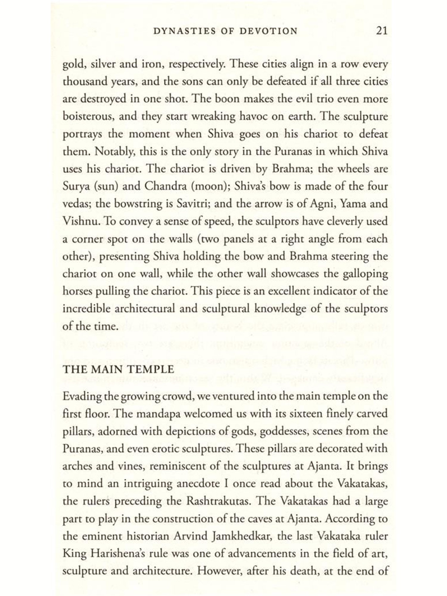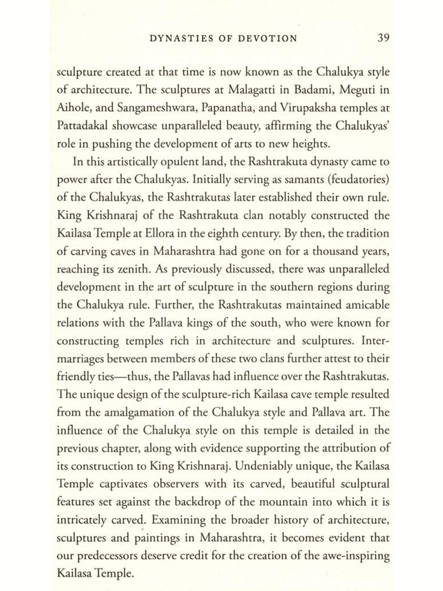 Upon receiving the book Dynasties of Devotion written by Deepa Mandlik, I was immediately intrigued by its title, as it suggested something new and noteworthy. As I delved into its pages, I realized I was right. The book sets out the narratives of seven temples each a testament to the noble kings who, through their vision and valour, brought these architectural marvels to life. In the hands of the author, the bravery of these kings is not just acknowledged but gloriously celebrated. What stands out in the narrative is the author's commitment to providing readers with credible information. As the historical tales of these kings' valour unfold, the author grapples with a delicate decision-whether to place special emphasis on the temple architecture or not. Admirably, Deepa Mandlik has successfully navigated this dilemma, ensuring that both aspects receive due and appropriate attention throughout the narrative. Temples and sculptures are distinctive features of Indian culture. Temples have been built since ancient times across civilizations in present-day countries such as Egypt, Italy, Greece, Iraq, Iran, and beyond. A notable example is the temple housed in the Metropolitan Museum of Art in New York, discovered during the excavation of the Aswan Dam. Museums like the National Museum of Iran in Tehran and the Vatican Museums in Rome also showcase ancient sculptures, attesting to the global significance of these cultural treasures. In India, there is an abundance of temples, adorned with sculptures of deities who are worshipped, instead of being housed in museums. The sheer variety of sculptures can be overwhelming for researchers. This book is a detailed and scholarly exploration of iconic temples like the Kailasa Temple in Ellora, the Brihadeeswara Temple in Thanjavur and Gangaikondacholapuram, the Airavatesvara Temple in Darasuram, and the Chennakeshava Temple in Belur. The historical context of these temple constructions is presented with meticulous care, prompting readers to ponder whether the author is a history scholar or an expert in temple architecture. Among the numerous temples outside India, the author has chosen to focus specifically on temples in Cambodia. This deliberate selection stems from the fact that the temple here is not only the creation of the mighty King Suryavarman-II but is also currently the largest Vishnu temple in the world, inspired by Indian culture. Whether in India or Cambodia, the author's meticulousness and aesthetic sense is evident in the thoughtful curation of temples. Typically, the study of temples tends to overlook the historical background of their creation. However, author Deepa Mandlik addresses this gap by providing detailed historical contexts. Examining the history of ancient India reveals a pattern wherein ambitious kings of various dynasties constructed magnificent