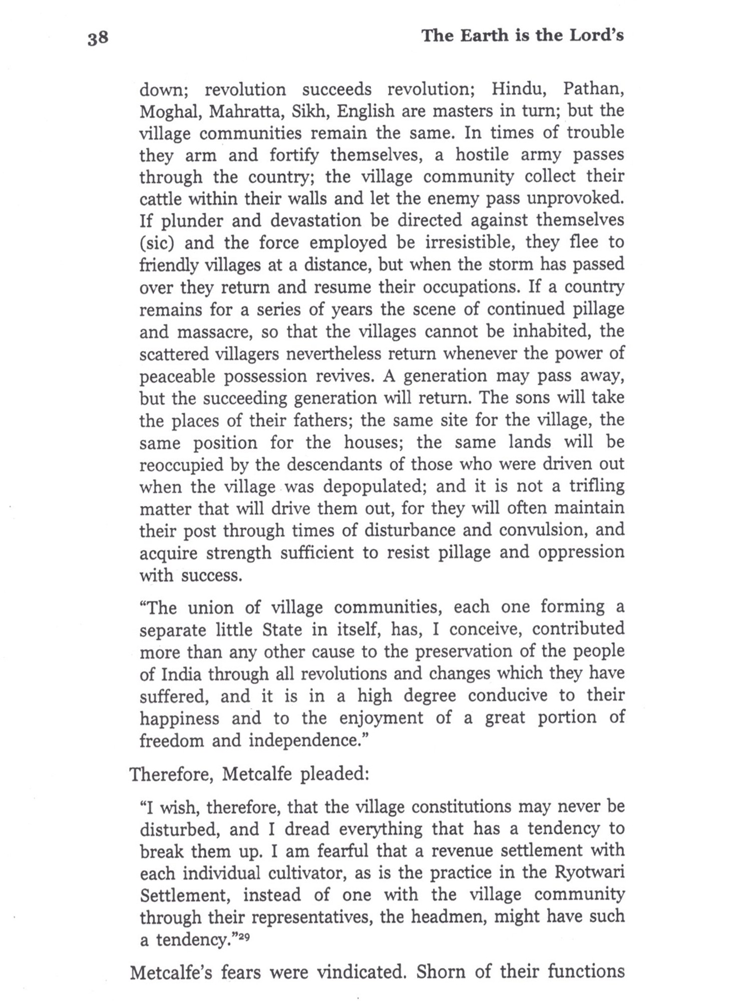 Vinoba's movement carried forward Gandhi's unfinished mission. He picked up Gandhi's broken thread much akin to a weaver continuing to weave without a break. Vinoba undertook to weave the fabric of nonviolent culture from the point where Gandhi had left it. Vinoba did what Gandhi wanted to, but could not. According to Pyarelal, Gandhiji insisted that the wealthy should be prepared to share their wealth with the have-nots. Vinoba initiated a concerted movement of sharing. Gandhiji wanted to educate the masses to evolve nonviolent methods of olving their problems. Gandhiji's yearning came to be satisfied by Vinoba. Vinoba tried to solve the land problem, and other problems as well, through the power of love and goodwill. He demonstrated nonviolence of the brave. Pyarelal says, Gandhiji knew that the programme of developing nonviolence of the brave would not be as attractive as the fight against the British. Vinoba conducted such 'unattractive' programme across the subcontinent for full two decades. He marched ahead with a small band of workers which he could mobilise in this unglamorous mission. He motivated around 10,000 workers to continue trekking for two decades. Jayaprakash Narayan has rightly said that had Vinoba not come on the scene, we would have forgotten the idea of nonviolent revolution, and the ideology of Sarvodaya would have become a distant and hazy ideal. Vinoba's movement took ahead Gandhi's thought of nonviolent revolution, of radical social transformation. The saga of this historical movement has been presented with lucidity and authenticity in Parag Cholkar's book. It is the fruit of tireless labours, deep scholarship, penetrating analysis, broad perspective and clarity in understanding. A comprehensive account of this great revolutionary movement was not available up till now. Now an authentic document has taken shape through Parag's efforts. For this, he fully deserves our praise and gratitude. It is not merely a piece of documentation. Everything has been put in a broad perspective. In the beginning, the genesis and the history of the land problem have been reviewed. While giving some eye-opener information about the land rights, it tellingly tells how India was enslaved. In this background, we can view in the proper perspective the freedom movement led by Gandhi, and Vinoba's movement for second Independence, When Vinoba initiated the bhoodan movement in 1951, several forces had pounced upon the farmers and village communities were breaking up. The country had become Independent, but the villages had continued to be subjugated. Vinoba embarked on a fight for their freedom. Parag has given a thrilling account of the genesis and progress of this unique movement in detail. In the words of Jayaprakashji, Vinoba made an extra-ordinary attempt to instil spiritual values in the social fabric of Indian society through the programmes of Bhoodan and Gramdan. Vinoba's movement was a stupendous effort for moulding human beings and for a humane revolution. Hundreds of thousands of individuals voluntarily donated hundreds of thousands of acres of land for distribution to the landless. Incredible as it may sound, it is incontrovertible that 2.5 million acres were distributed among the poor, the deprived and the oppressed, enabling them to earn their bread with self-respect. When the programme of Gramdan began, it was such that we find it difficult today to believe that such a programme could be imagined and actually implemented, at least to some extent. Initially, the idea was to transfer the ownership of the land in the village to the gram-sabha (village assembly), to be followed by its equal distribution, treating the village as a family-unit. Such distribution actually took place in a number of villages. It was nothing short of a miracle-a resounding testimony to the power of love and nonviolence. Vinoba had said that he had a vision of the Lord in those villages. Parag has done a significant work in preparing an authentic and detailed document on this novel revolution. It presents before us a clear picture of the movement in totality. It answers many questions and dispels many doubts. Parag has forcefully argued that Gramdan is still relevant. The last chapter is worth going through in this connection. The world is becoming one today. But the present globalisation is only a facade for turning the world into a global market. We do not want world market; we want the world to become one family. For this purpose, society would have to be re-ordered in accordance with Gandhi's concept of oceanic circles. Vinoba's movement gave a glimpse of such an order. A wholly perfect and desirable world order can stand only on the foundation of Gram-Swaraj (village self-rule). Parag has produced an invaluable document of the Herculean effort undertaken through an unprecedented people's movement for giving shape to this order. Gandhian social activists will find it inspiring and illuminating.