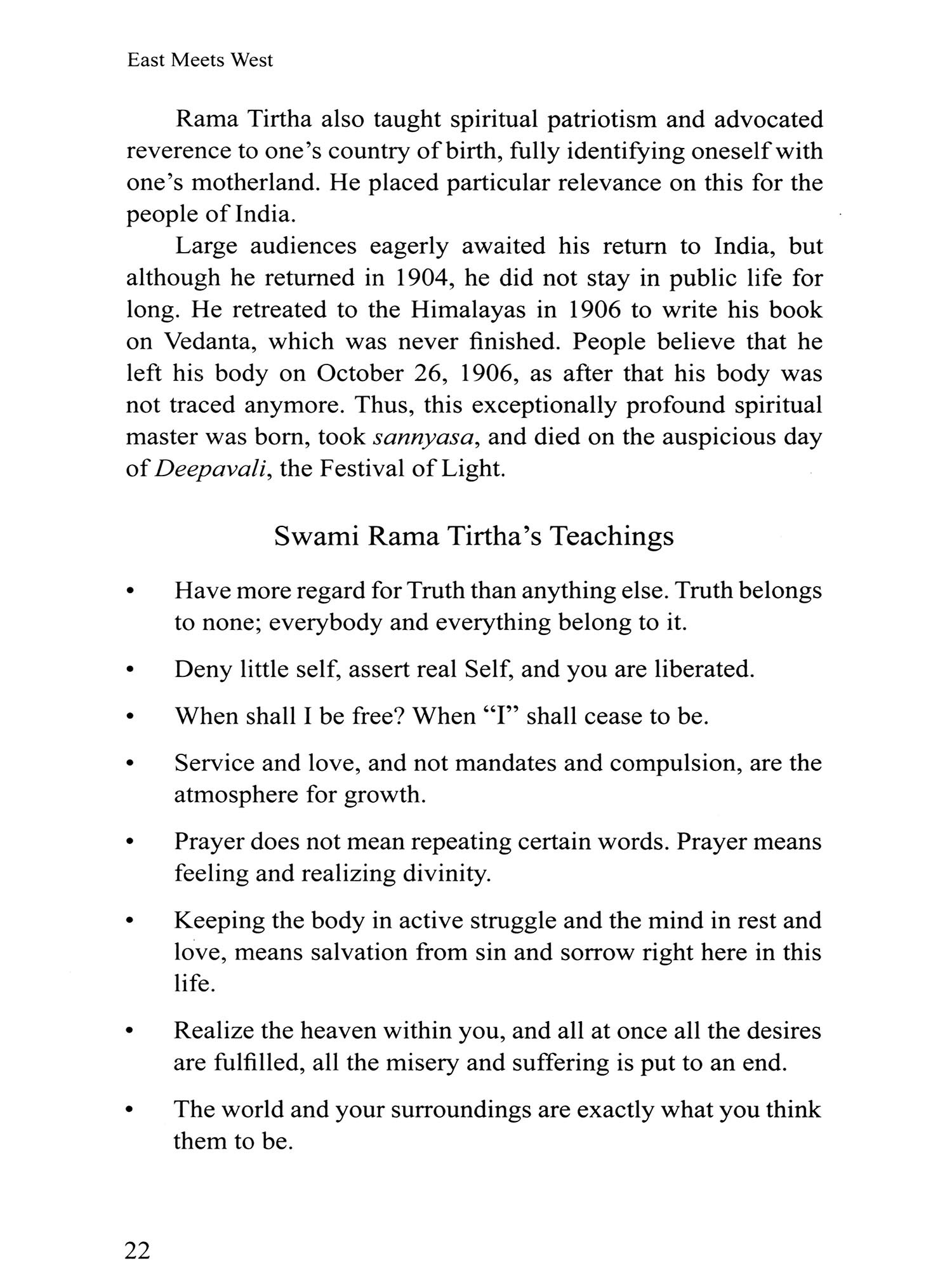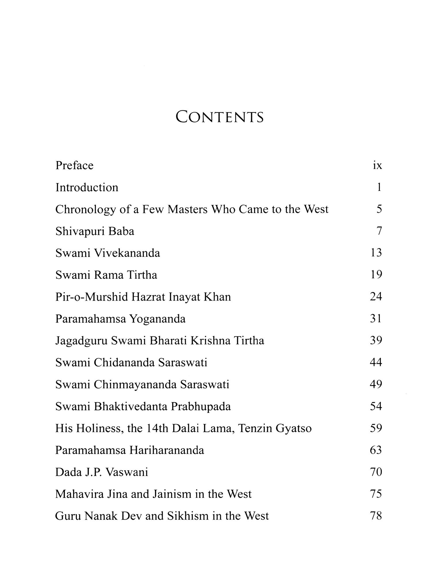 Putting full trust in God, these great masters often came with nothing in their pockets, and yet found new homes, new friends, and followers in the West. From nothing, these spiritual giants built huge organizations. When they entered the lecture halls of the world they won the hearts of thousands. They are the luminous sons and daughters of India who have illuminated the world. We have included just a few in this booklet, but we pay our homage and respect to all. We pray that their grace and blessings continue to light up our hearts and minds with the timeless treasures of India.
