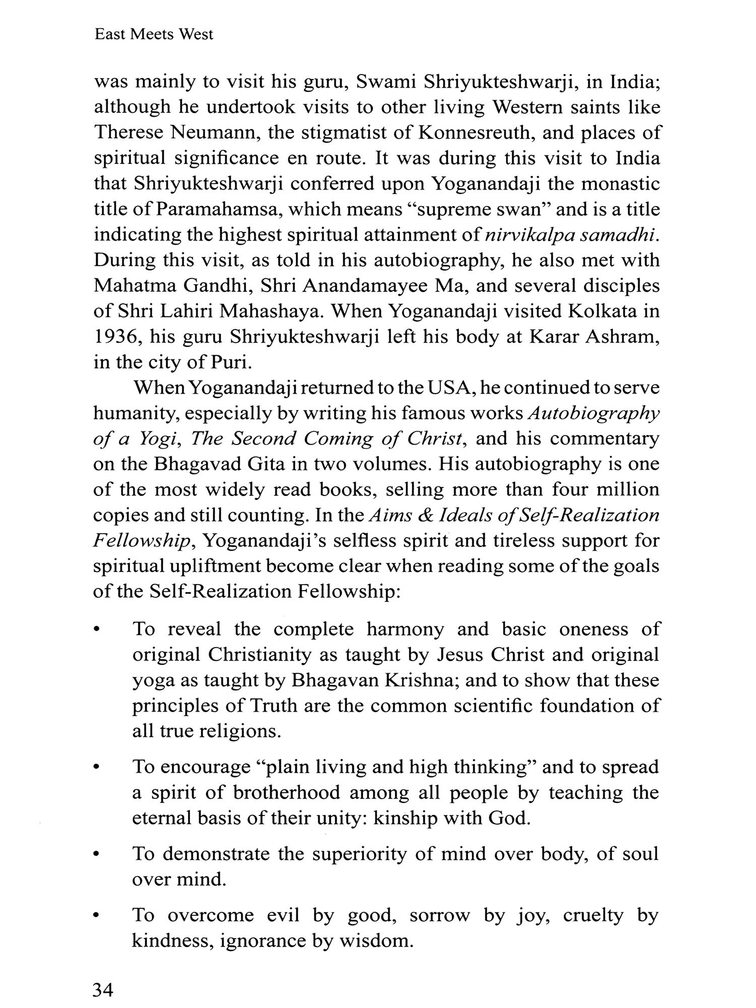 Many masters such as Shri Ramakrishna Paramahamsa, Shri Lahiri Mahashaya, and Swami Shriyukteshwarji trained their followers to be of service to the people of different faiths and even the entire world. They not only became the masters of the Hindus, but in their hearts, which encompassed the whole of God's creation, they could feel the intense longing for spirituality coming from the Western world. The West, which has achieved much success in the material world, was now crying for God and spirituality, and the great masters could feel that the time had come to bring the age-old spiritual wisdom of India to the West.