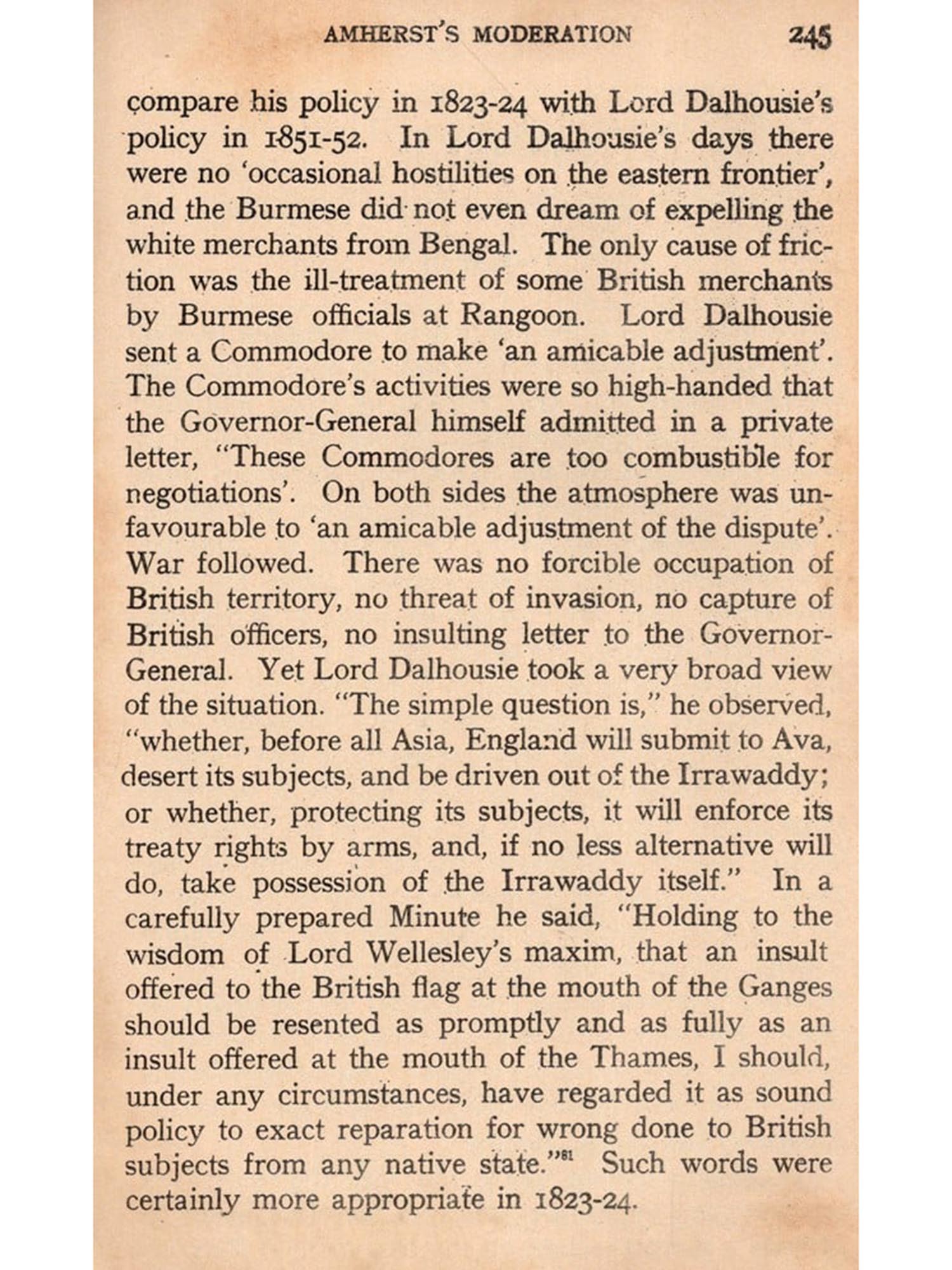 I have not tried to narrate the history of Burma and Assam; my purpose is to describe in some detail the policy pursued by the British Government towards these States. Probably my readers will agree with me in saying that, throughout the period covered by this volume, that policy was essentially pacific and defensive. Be that as it may, I have dealt with the subject from the British Indian point of view. The internal history of Burma and Assam has been altogether excluded, except in so far as references to internal conditions were found necessary to explain the attitude adopted by British authorities towards particular questions. My standpoint is, therefore, quite different from that adopted by Sir Edward Gait in his History of Assam and by Sir Arthur Phayre and Mr. G. E. Harvey in their works entitled History of Burnia.
