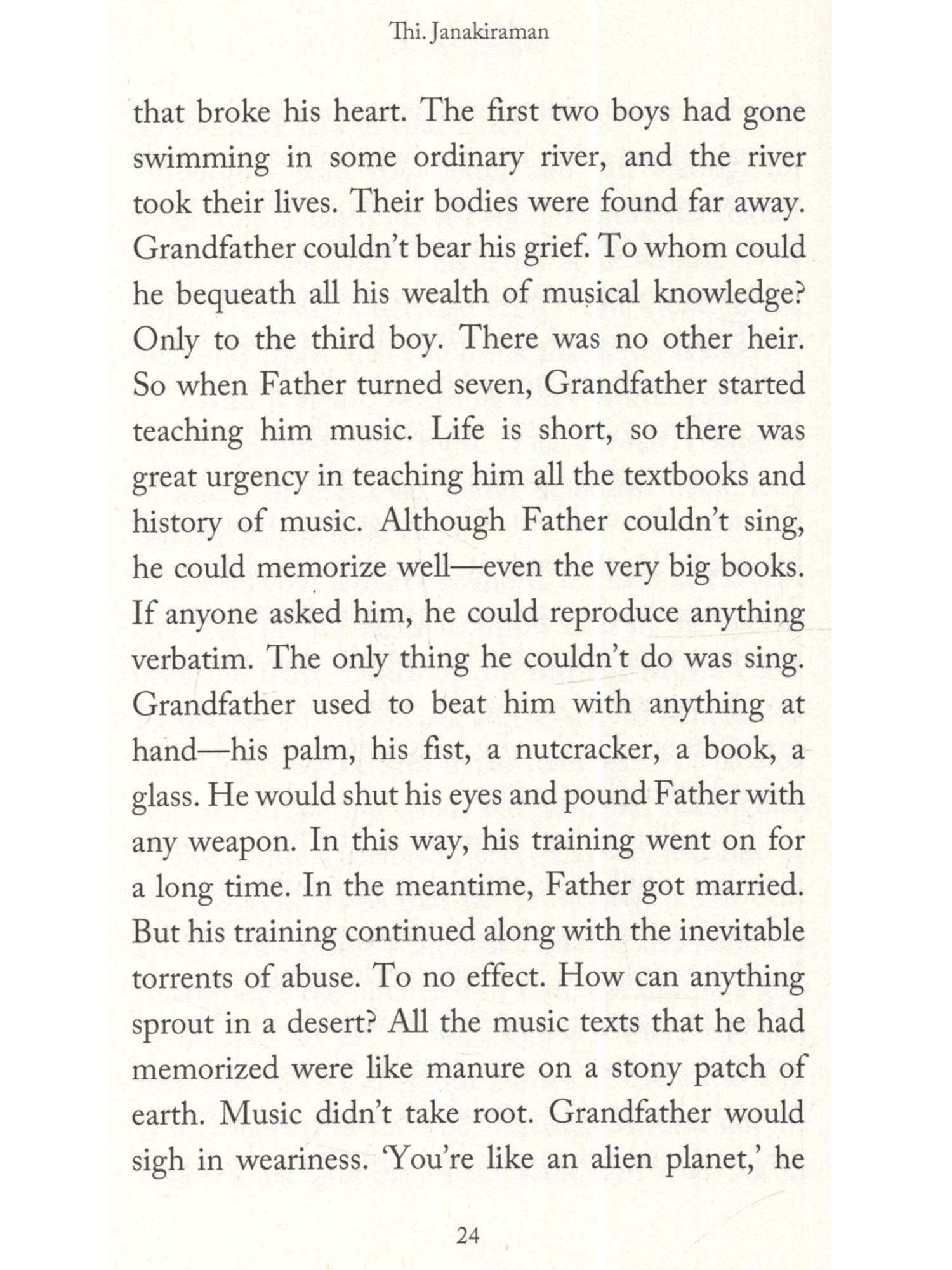THIJA OF THI. JANAKIRAMAN (1921-1982) was a major figure of twentieth-century Tamil literature. A connoisseur of Carnatic music, he worked for All India Radio Madras from 1954, and fifteen years later was appointed chief producer of educational broadcasts in All India Radio Delhi Thija published over 150 short stories, nine novels, seven novellas, four travelogues, and occasional essays. In 1979, he won the Sahitya Akademi Award.