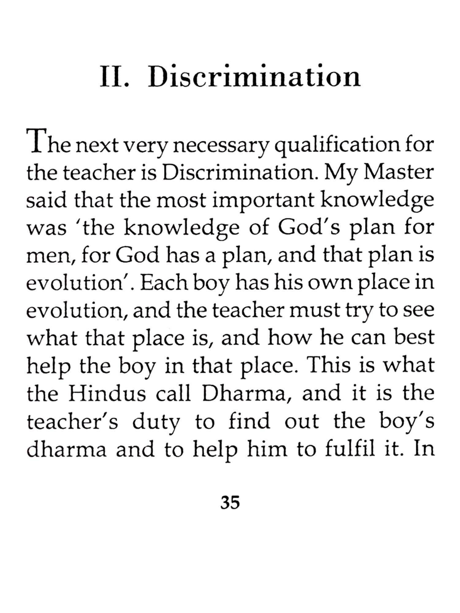 In long past lives the author of this little book had much to do with educational work, and he seems to have brought over with him an intense interest in education. During his visits to Benares [now, Varanasi], he paid an alert attention to many of the details of the work carried on in the Central Hindu College, observing and asking questions, noting the good feeling between teachers and students, so different from his own school experiences in Southern India. He appears to have been brooding over the question, and has, in this booklet, held up the educational ideals which appear to him to be necessary for the improvement of the present system.