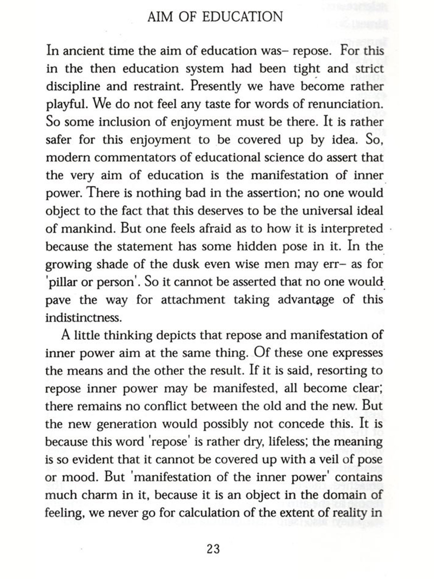 Neovedantists had revived this aspect in universal educational science. Swami Vivekananda Sri Aurobindo, Sister Nivedita, Rabindranath Tagore, Sri Anirvan are such pioneers. Some of course consider Mahatma Gandhi to be so. While taking classes on "Vedantic system of education and its implementation in modern system" in the department of Education, Jadavpur University, I was attracted towards the subject and found the works of these neo-fantasts quite vast and fascinating.