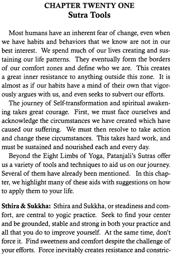 The Sanskrit word sutra informs the English word "suture" and literally means a thread or a line. The Sutras are like sutures or threads, composed as terse aphorisms designed to stitch together the wisdom of Yoga. Over the centuries, great sages and gurus have expounded on these aphorisms in various commentaries, articulating and expanding the philosophical wisdom and pragmatic practices of what is known as Raja Yoga - the Royal Path.