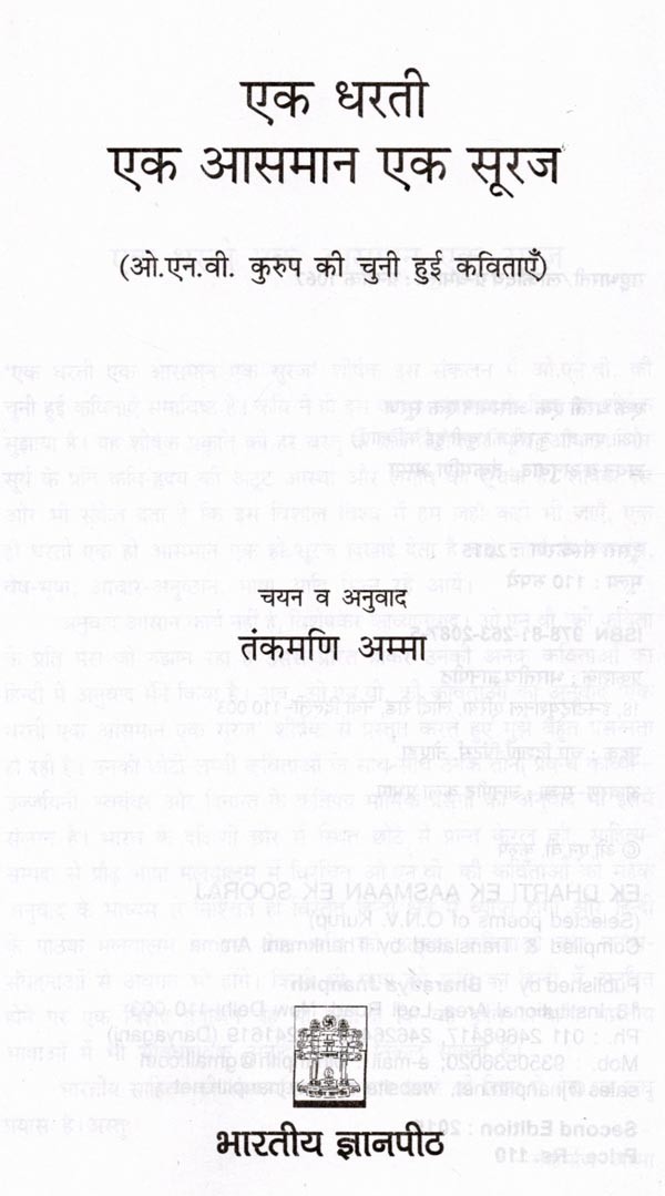 एक धरती एक आसमान एक सूरज (ओ.एन.वी. कुरुप की चुनी हुई कविताएँ): Ek Dharti Ek Aasmaan Ek Sooraj (Selected Poems of O.N.V. Kurup)