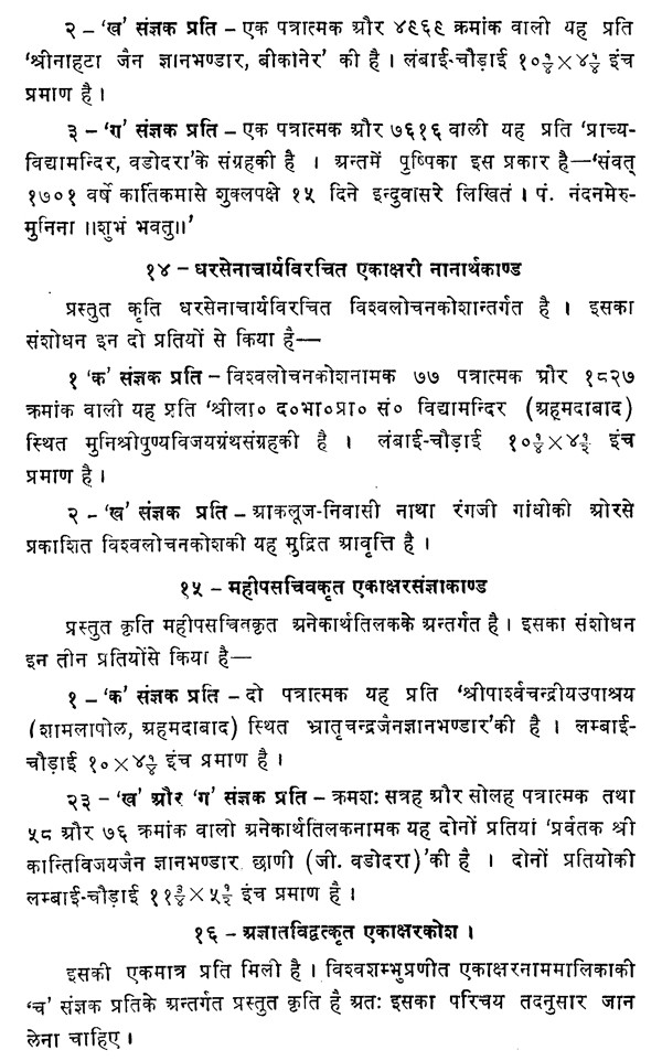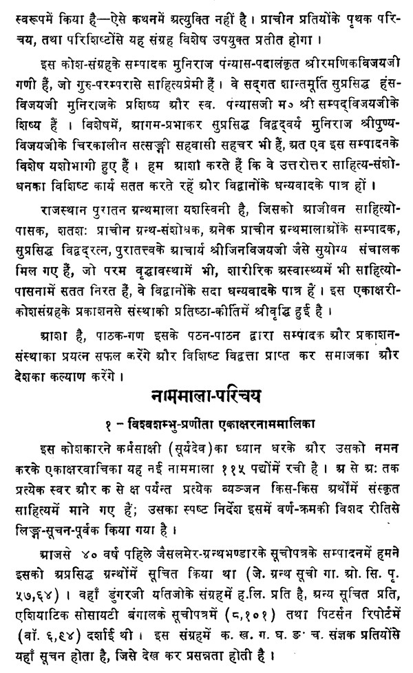 एकाक्षरनाम - कोष संग्रह- Ekakshara Nama Kosh Sangrah- Rajasthan Puratan Granthmala, Part-64 (An Old and Rare Book)