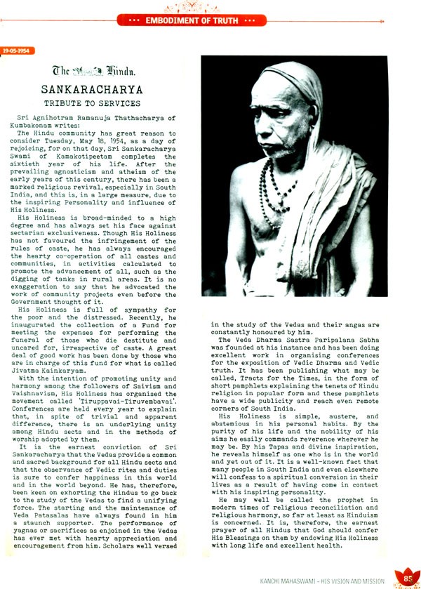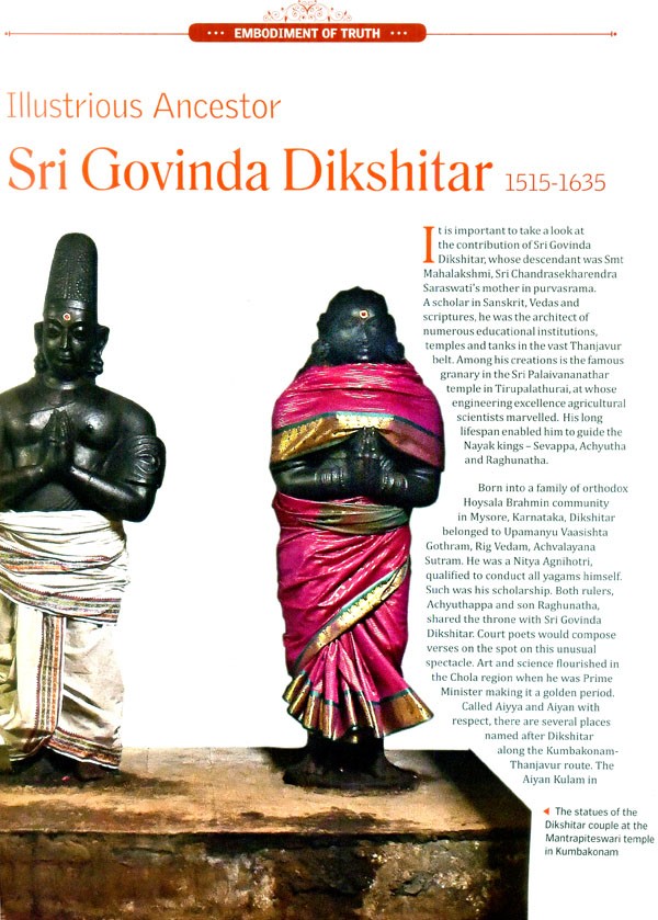 Sri Sankaran Vijayendra Saraswathi has been generous in providing material from the mutt and has also shared his reminiscences of living and learning under the tutelage of Sri Chandrasekharan Saraswati, for which we are most thankful.