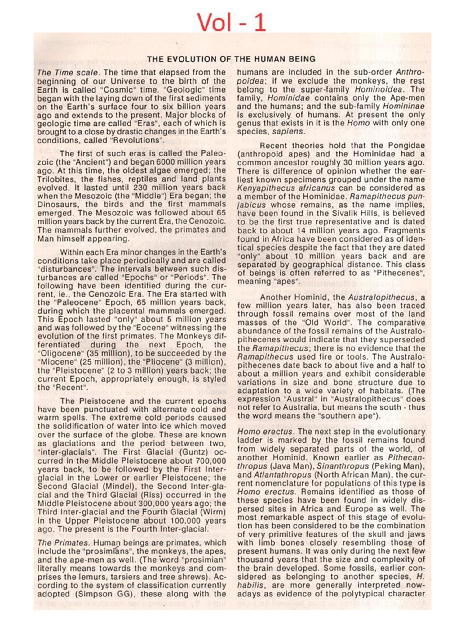 "Balanced Treatment. It is an article of faith with the ISDL that, in the Encyclopaedic studies undertaken by it, a proper academic balance will be maintained in regard to the coverage of aspects on which there is controversy, care being taken to present all the view-points expressed. This principle has been observed in this Encyclopaedia also; especially in topics like THE EVOLUTION OF THE HUMAN BEING. where the "last word has been far from being said, we have taken care to scan the latest literature available to us, as for example the studies on human MITOCHONDRIAL DNA. We have also tried to be theoretically neutral in regard to subjects like RELIGION, BELIEF SYSTEMS, etc.
