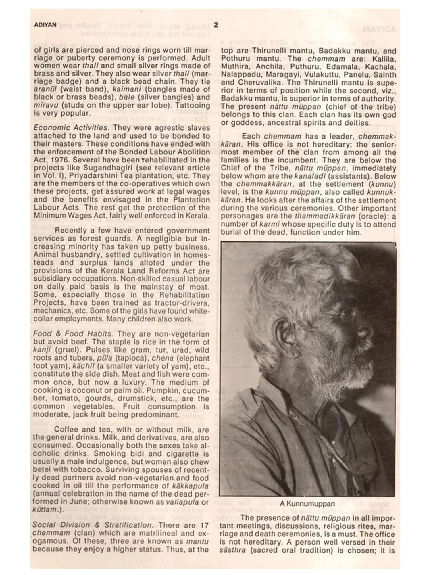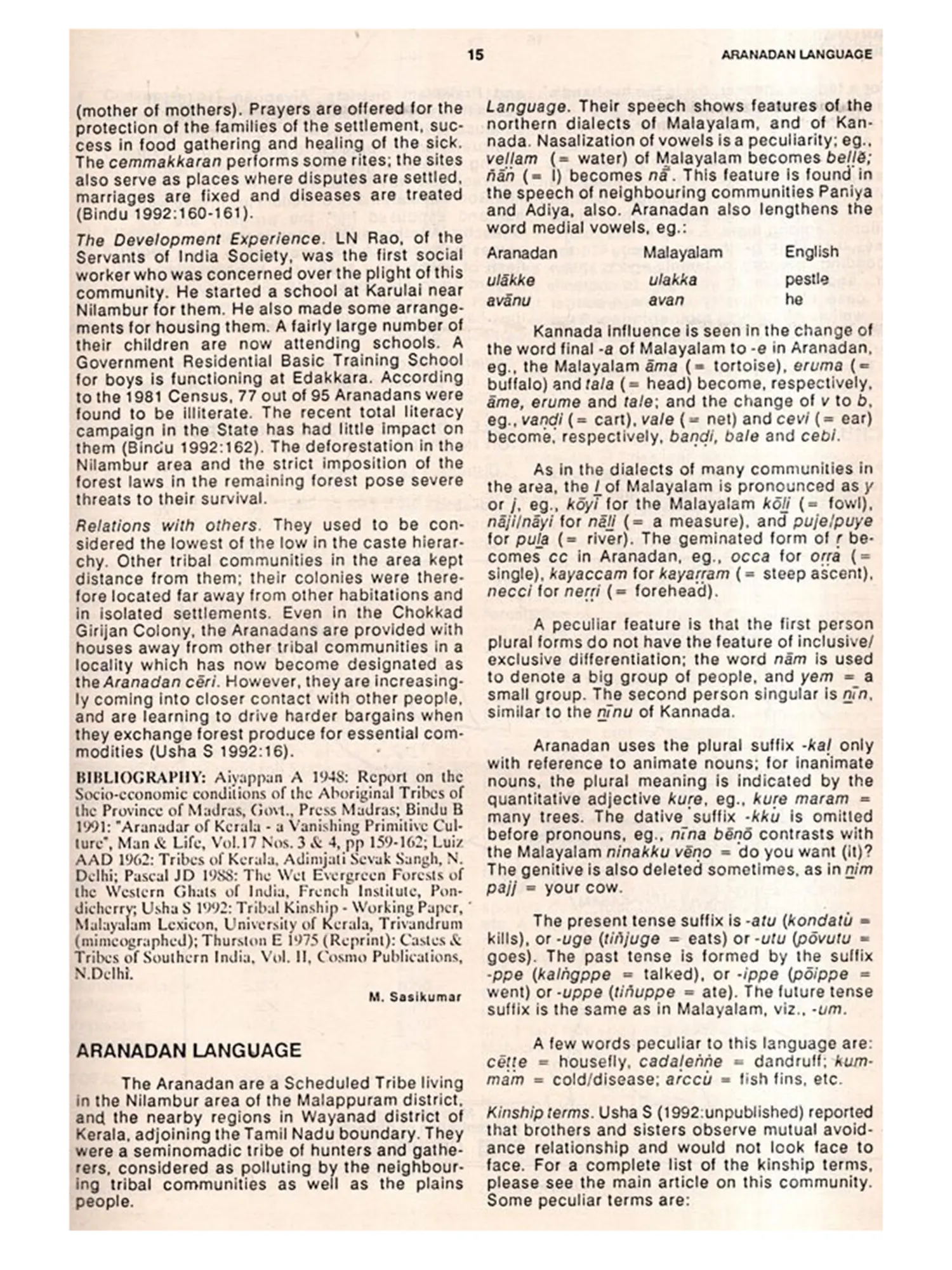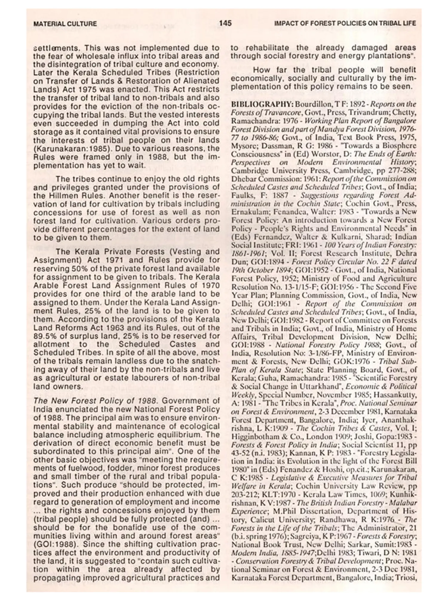 Acknowledgements. Several persons and organizations have been generous with assistance and advice, we are grateful to all of them. Special mention has to be made of Sri Mudda Mooppan, a tribal headman about 90 years old, belonging to the Kurumba of Attapady (Palghat District) and a legend in his lifetime. He was honoured with an award by the Dravidian Linguistics Association in 1992 in recognition of his deep knowledge of ethnobotany and tribal medicine. He was a mine of information and familiarised us with the tribal point of view in matters of tribal religion, sorcery and magic and "development".