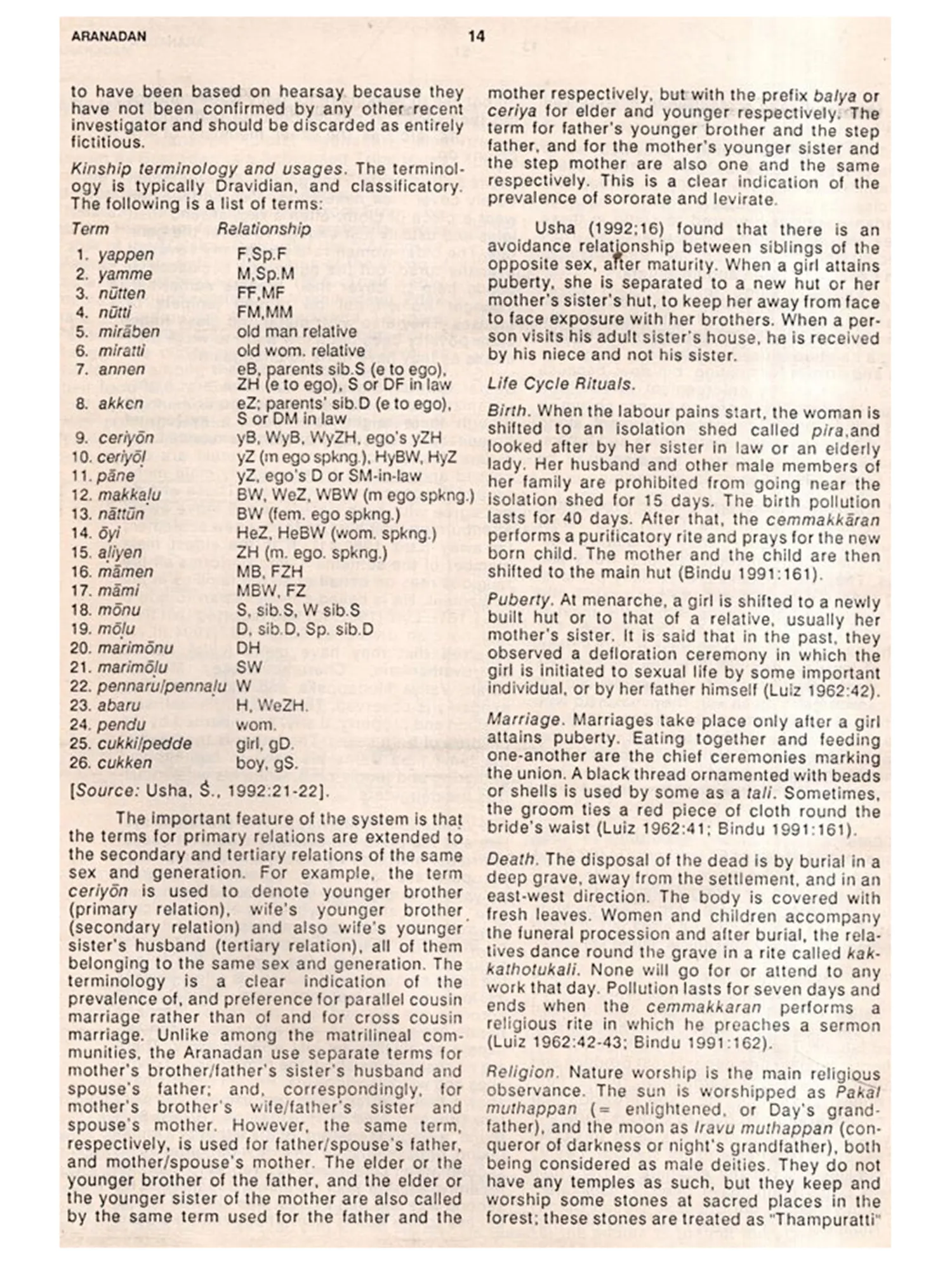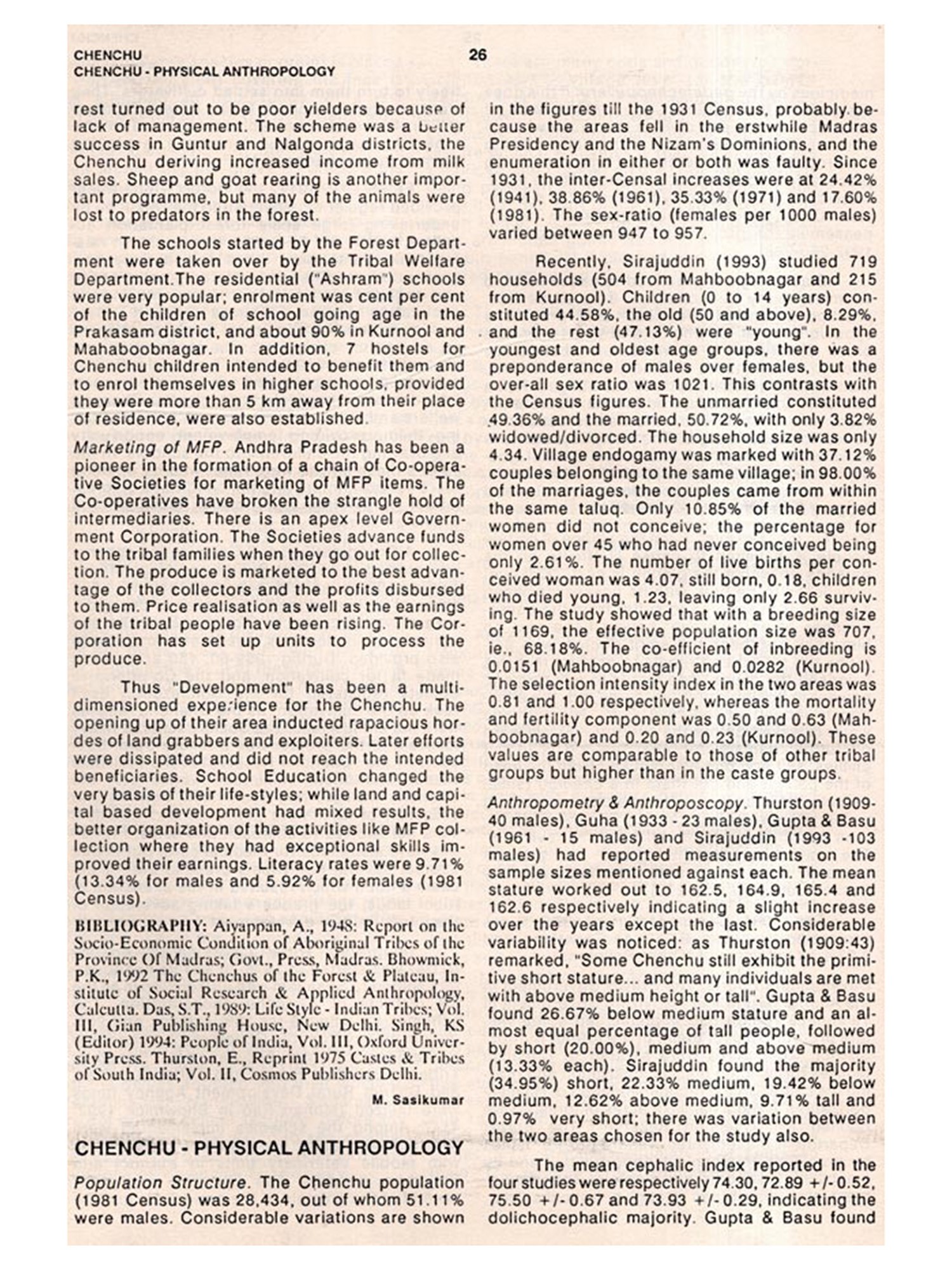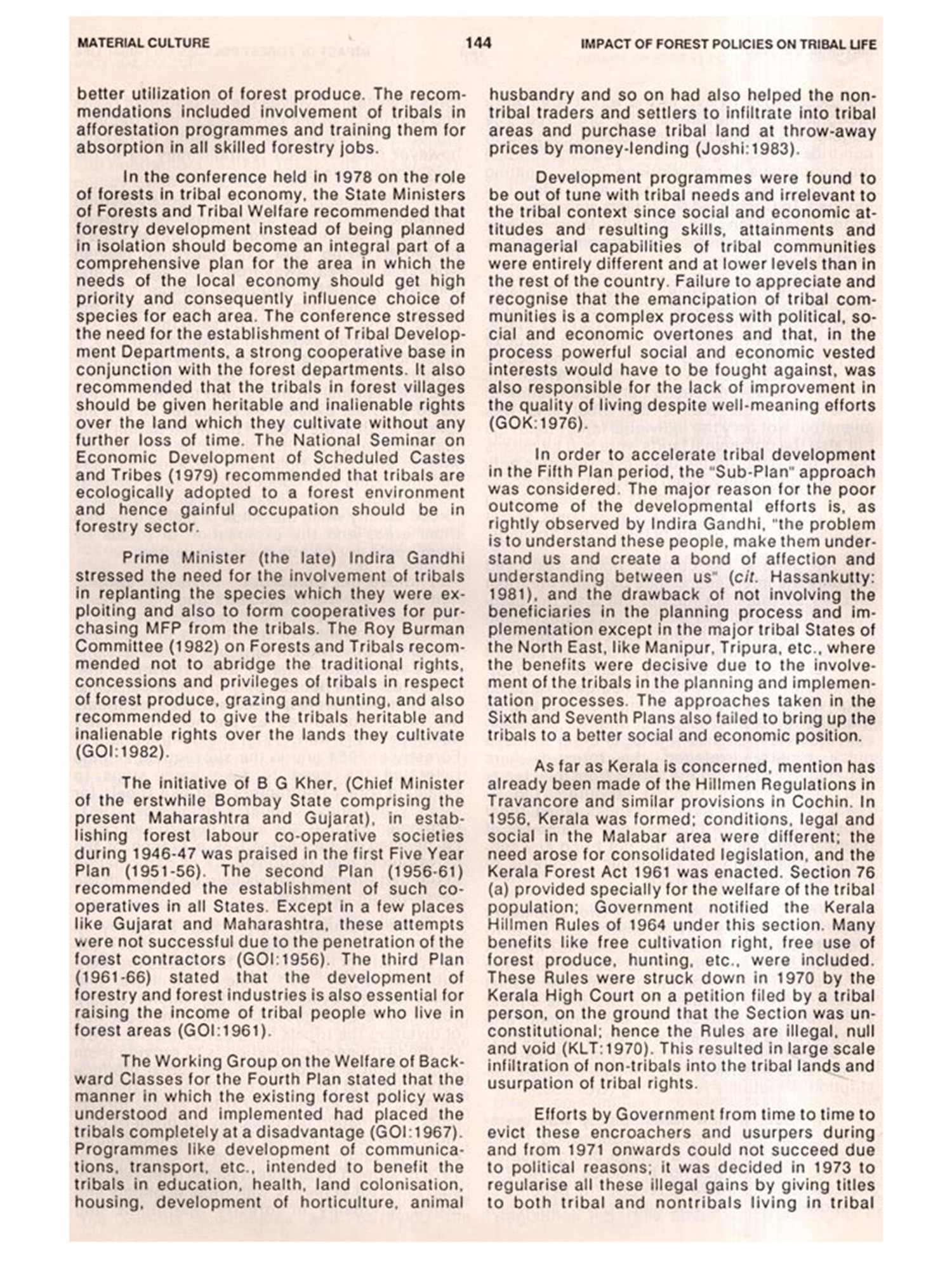 Acknowledgements. Several persons and organizations have been generous with assistance and advice, we are grateful to all of them. Special mention has to be made of Sri Mudda Mooppan, a tribal headman about 90 years old, belonging to the Kurumba of Attapady (Palghat District) and a legend in his lifetime. He was honoured with an award by the Dravidian Linguistics Association in 1992 in recognition of his deep knowledge of ethnobotany and tribal medicine. He was a mine of information and familiarised us with the tribal point of view in matters of tribal religion, sorcery and magic and "development".