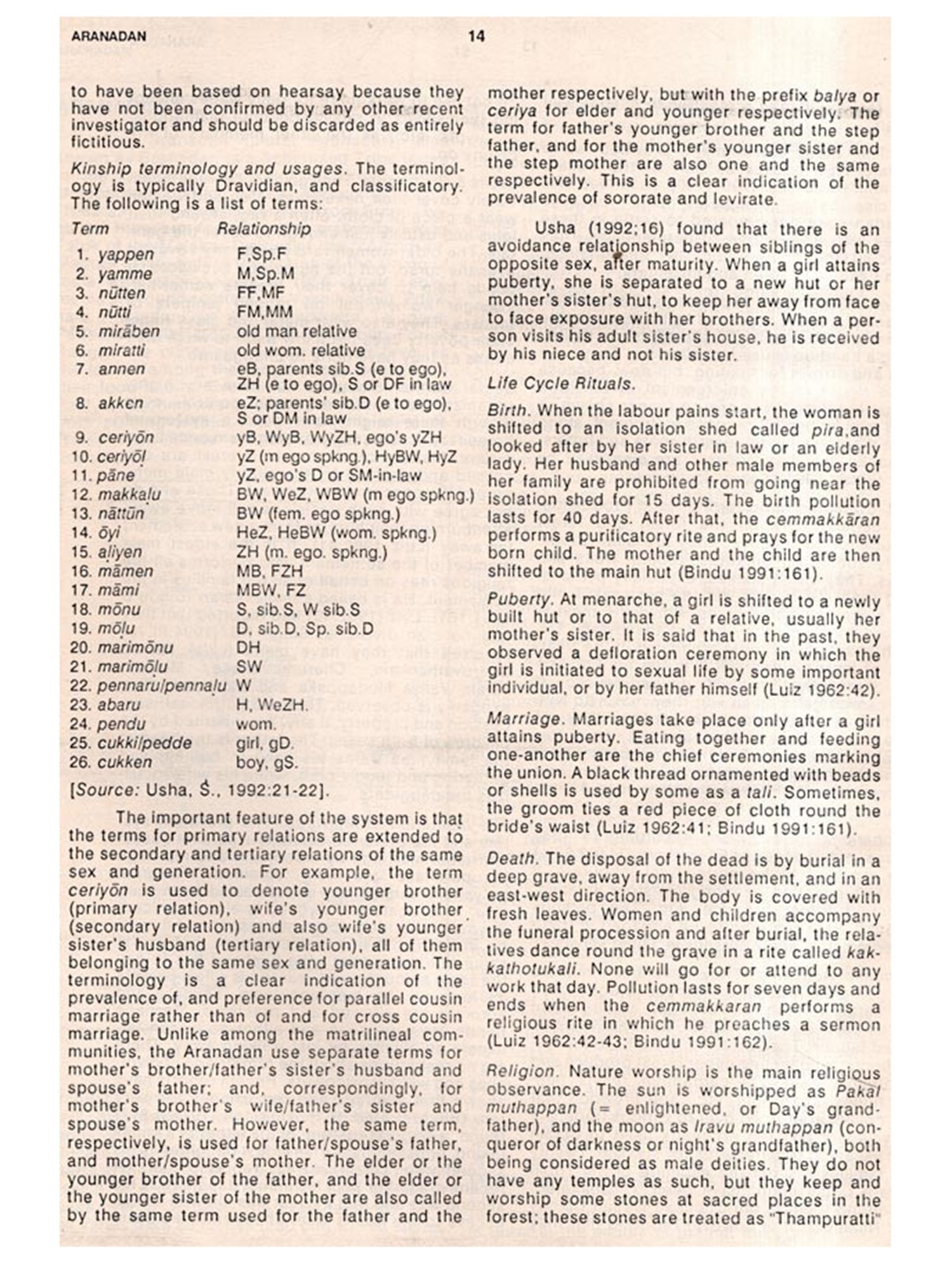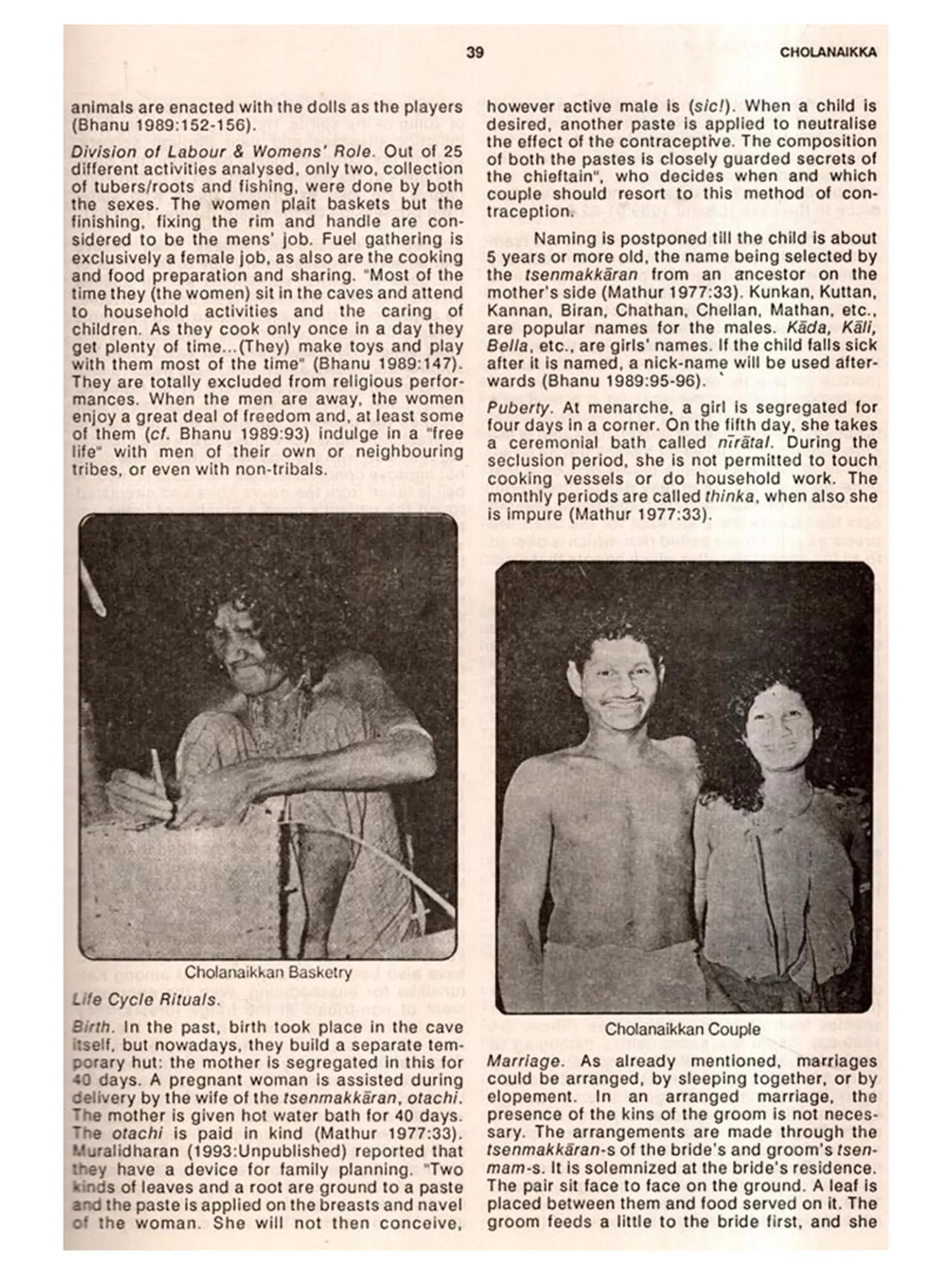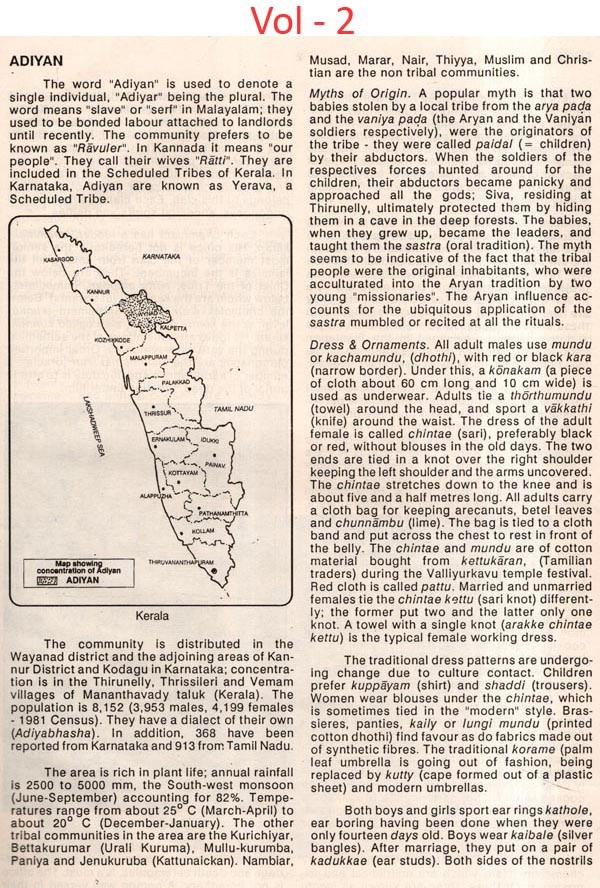 "Dravidian Tribea a Logical Construct. Therefore in this Encyclopaedia, the term Dravidian Tribe represents a logical construct: if a community of humans is included as a "Scheduled Tribe" in the Constitution of India, and speaks a language considered on linguistic grounds as a member of the Dravidian Family of Languages, then, we have included it for our study. To this we have added the Brahul because their language is a member of the Dravidian Family of languages. It is with some hesitation we are including the Vedda, our intention is not to claim that they are "Dravidian" As a prototype of a condition still found among many communities in India like the Cholanaikkan, we consider that the Inclusion may be helpful in tracing the pre-historic spread of Dravidian tribes.