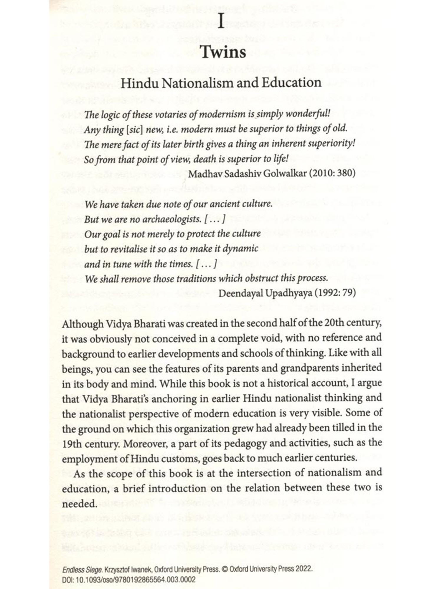 This ideology assumes the existence of a Hindu nation-a community bound together by Hindu religious traditions which worships India as both its homeland and a sacred land. The basic elements of this ideology were outlined by Vinayak Damodar Savarkar in his Hindutva. Who Is a Hindu? Savarkar (2005: 99-100), who is thus considered the most important among the founders of this ideology, claimed that there are three basic elements of Hinduness (Hindutva): (1) Jati (jati; race, i.e. genetic connections), (2) Sanskriti (sanskrti; culture, which in fact turned out to mean mostly 'religion'), and (3) Rashtra (rastra; nation).¹ The term Hindutva, which originally denoted the sum of these core elements, in time often started to be used as a synonym for the ideology of Hindu nationalism.