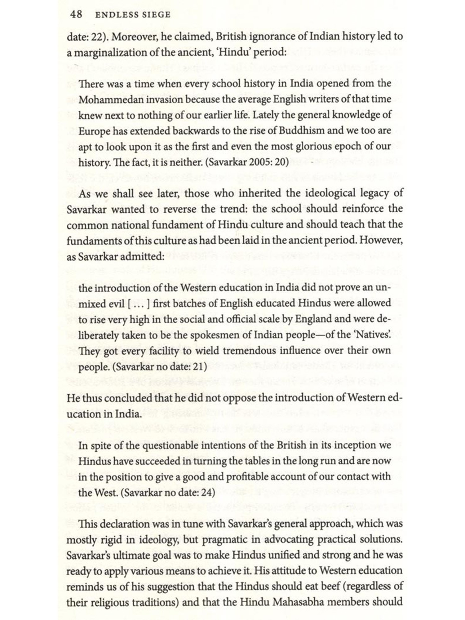At the heart of Savarkar's project is an arranged marriage of politics and religion-a union known throughout history in various forms-that cre-ated an idea of a nation which is held together by religious culture. The Hindu nationalists reject this charge, however, and following in Savarkar's footsteps declare that they promote a wider culture, not a more narrowly defined religion, and that their nationalism is 'cultural, not 'religious.