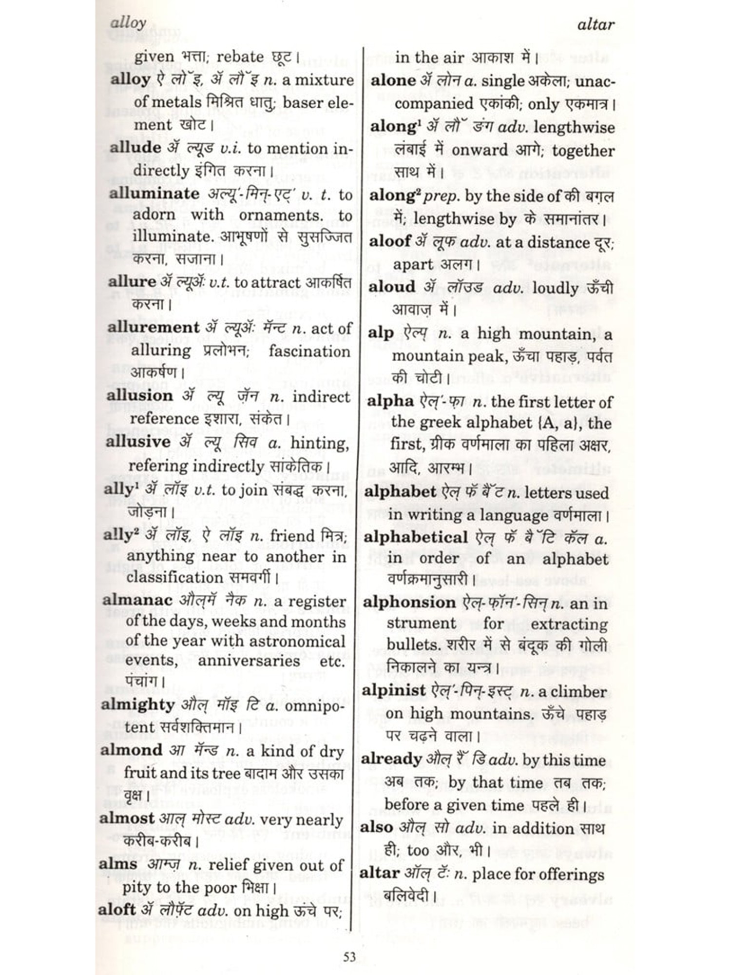 अंग्रेजी से हिन्दी के अनेक कोश है और हिन्दी से अंग्रेजी के भी कोश कई है, किन्तु संयुक्त रूप से कोई ऐसा कोश नहीं है जिसके माध्यम से एक ही कोश के द्वारा दोनों कार्य सिद्ध हो सकें। पठन-पाठन तथा सरकारी क्षेत्र में इसकी आवश्यकता अत्यन्त व्यापक रूप से अनुभव की जा रही थी जिसका समाधान प्रस्तुत कोश के माध्यम से होता है। इसकी शब्द सम्पदा भी व्यावहारिक रूप से पर्याप्त है और जन साामान्य और सामान्यतः विद्वत जगत का काम इससे चल सकता है। इसके साथ ही एक अच्छी बात है कि शब्दों के अंग्रेजी अच्चारण देवनागरी लिपि में भी दिय गये है जिससे उच्चारण का संज्ञान सामान्य रूप से अध्ययता को हो जायेगा। इसके साथ ही शब्द चयन की प्रक्रिया में सजगता बरती गई है और यह प्रयत्न किया गया है कि वांछित शब्द सम्पदा इस कोश में आ जायें।
