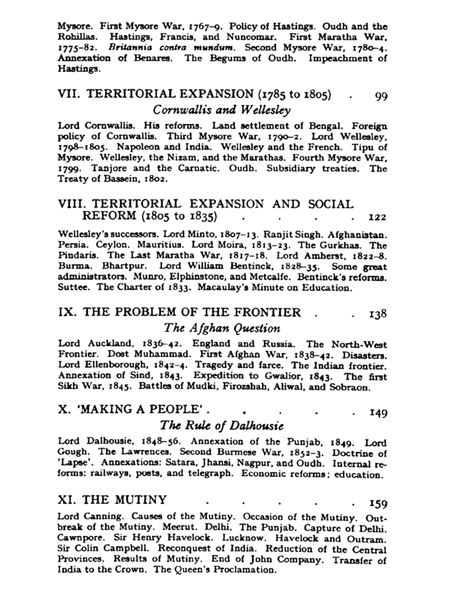 I have, of course, made some use of the more accessible primary sources, of dispatches, constitutional texts, official reports, and so forth, and in addition have incurred a heavy debt to previous writers on the subject. I have avoided, as far as possible, footnotes which in a book intended not for specialists but for the general reader seem to me pretentious and superfluous. But I hope I have included in a short bibliographical appendix all the works to which I am most indebted. Should there be any omissions representing debts long ago incurred and long since forgotten I crave pardon. There are however, two obligations which I must more specifically acknowledge. The first is to the works of the late Sir William Wilson Hunter, at whose feet I sat, and whose friendship I enjoyed, during the later years of his life, and whose premature death left a great work on British India less than half completed, and deprived English historical literature of what promised to be a real magnum opus.