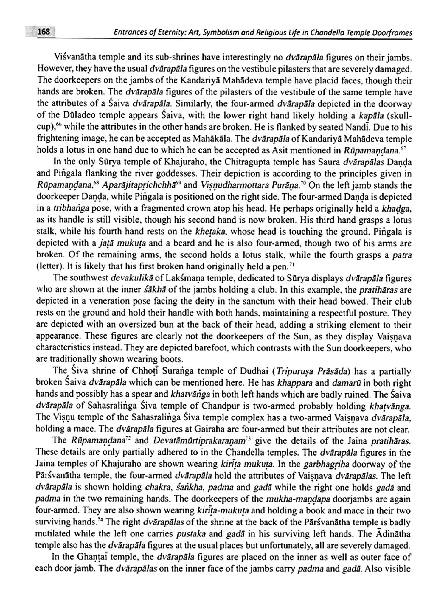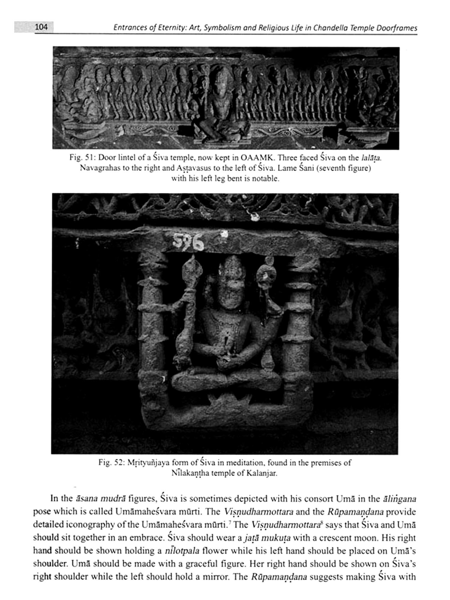 In 2006 when the late Professor Mata Prasad Tripathi, my guruvara at Deen Dayal Upadhyaya Gorakhpur Univerity, questioned me why I was not thinking of pursuing a PhD, little did I know that the course of my life was about to change which would be a lifelong fascination with the rich tapestry of India's art history, particularly the enigmatic and intricate sculptures of the Chandella temples. The artwork of the Chandella temples is rich not only because of their architectural marvel but also due to their symphony of diverse figural motifs displayed all over the temple. The pravesa-dv aras (entrance doors) of these temples held particular importance due to their distinctive ornamentation, which captivates and overwhelms the viewer with a sense of awe. The Chandella temples were designed in such a way that the temple itself represented the cosmos (vastu-purusa), with its pravesa-dv aras symbolizing a fraction (ansa) of the entire cosmic whole (purna). This amsa or the doorway is indicative of the personality or morphology of the temple and hence its study becomes very significant. They are not merely entrances, they serve symbolic and suggestive functions that are essential for comprehending the entire temple. Considerably, in many remains of dilapidated temples, the dedication of the temple is known only through the doorways. The silpak aras (sculptors) followed the canons outlined in architectural, sculptural and religious texts, while also drawing on their fertile imaginations and local traditions. Some of the remarkable sculptures seem to be the product of their original imagination as they are not found elsewhere and also their textual reference is unavailable. Essentially from the point of view of the placement of the divinities, intricate and varied figural motifs, textual studies and symbolic meaning, the pravesa-dv aras are the most significant architectural part of the temples.